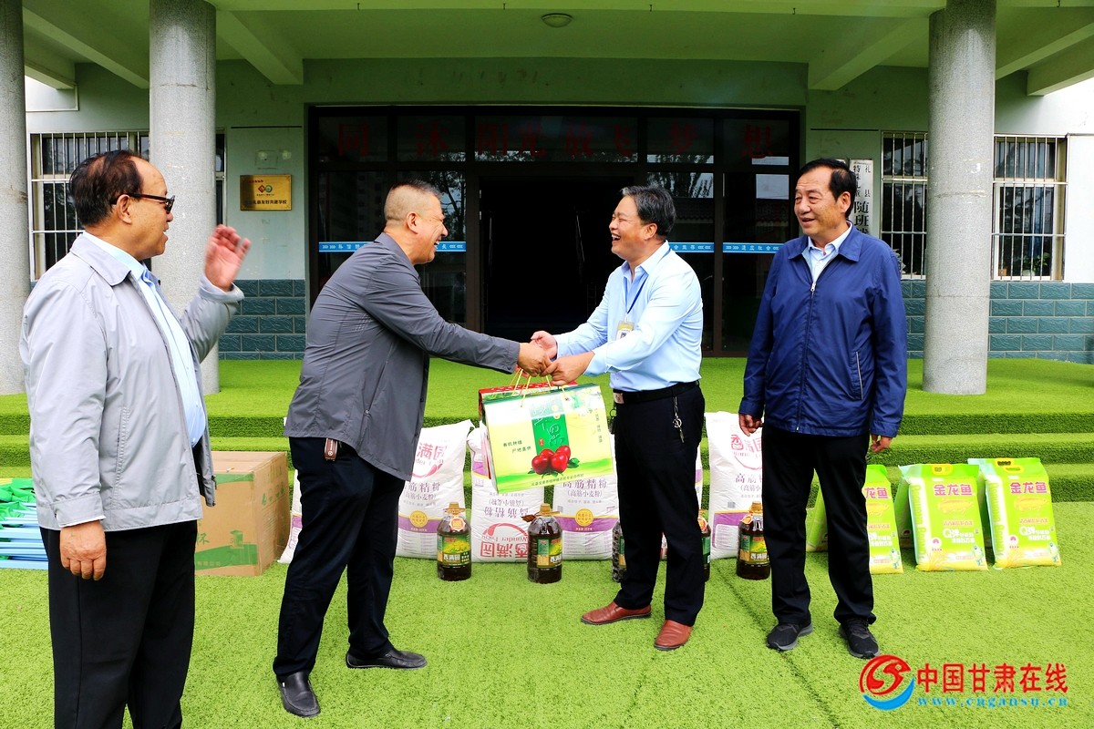爱心点燃梦想,真情铸就希望。活动中,礼县关工委联系金徽酒业礼县总代理乔红英先生为该校师生捐赠了面粉6袋(300斤)、大米6袋(120斤)、清油6桶(60斤),纸杯1000个、大型折叠伞2个、苹果2箱。在学校负责人的带领下,“爱心爷爷”“爱心奶奶”一边认真参观学校教学基础设施,一边详细了解学校基本情况。同时,在教室与孩子们面对面沟通交流,倾听孩子们心声,详细询问孩子及监护人的身体健康状况和学习情况,细致了解他们的所需所盼,嘱咐监护人要切实履行好监护责任,照顾好孩子的生活、督促好孩子的学习,时刻关注孩子的心理健康状况,大家还不时地鼓励孩子们好好学习,健康成长。活动结束时,“爱心奶奶”们还为学生及其监护人表演了精彩的文艺节目,表达了对学生的关爱之情,丰富和活跃了孩子们的精神文化生活。