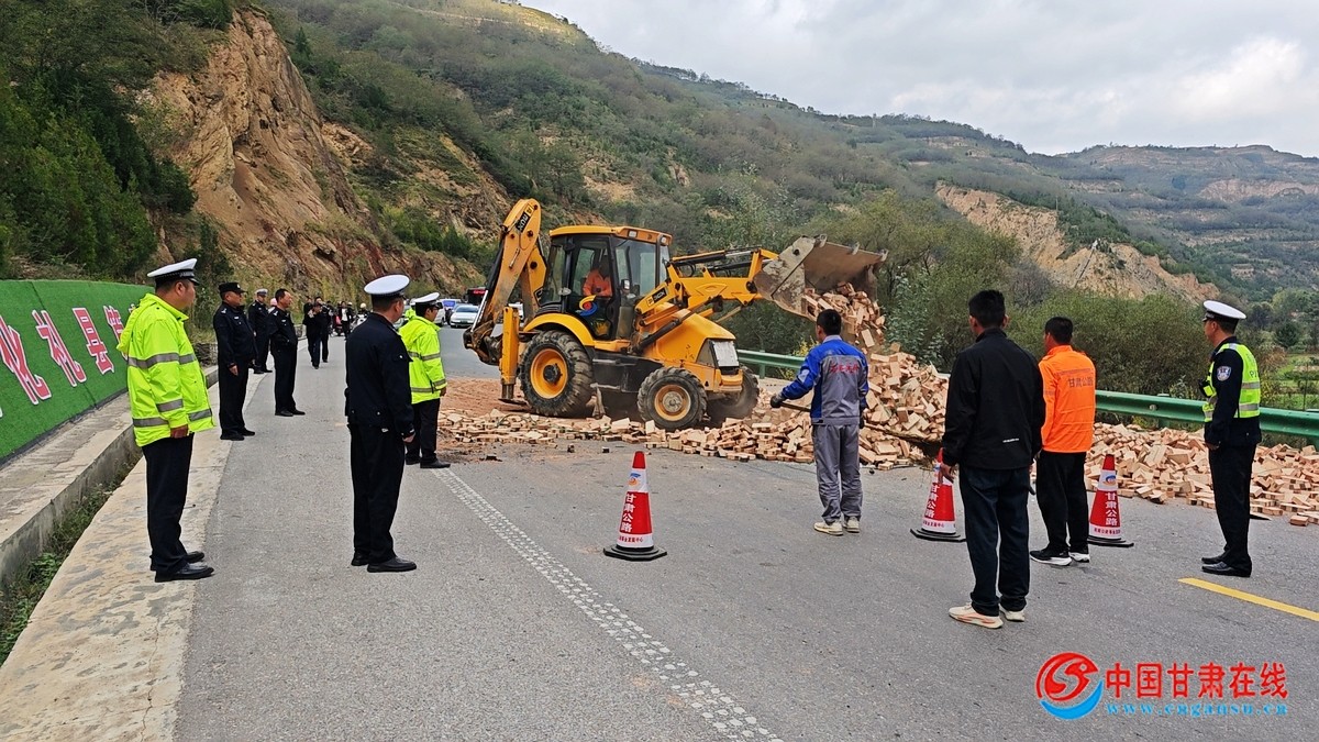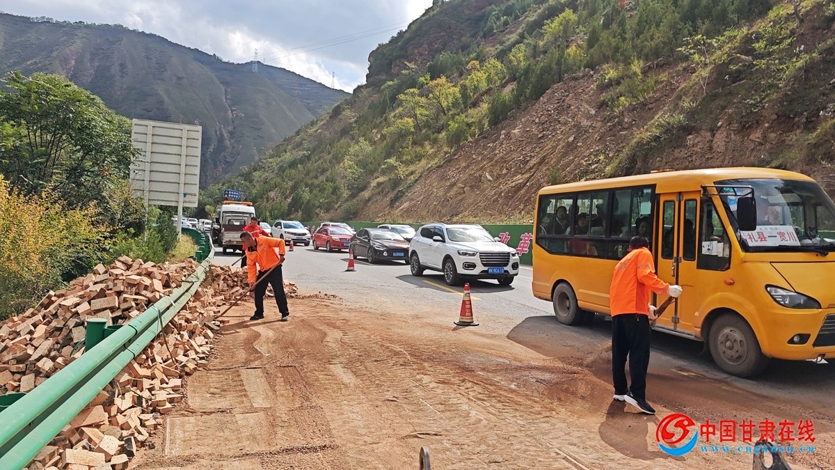 礼县公路段养护一线职工及时、快速、高效处理突发事故的行为,受到社会各界的一致好评,在国庆假期车流量较大的情况下没有影响车辆滞留,也没有影响礼县三国文化产业园活动。下一步,礼县公路段职工将继续履职尽责,“节日我在岗、保畅我先行”。积极打造“畅、洁、绿、美、安”的路域环境,为地方经济高质量发展贡献交通力量。图为指挥交通的情景。图为清理砖块的情景。