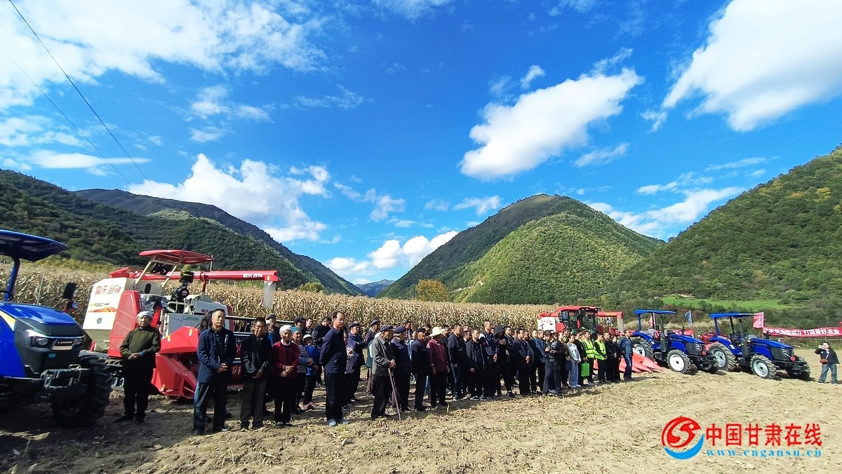 中国甘肃在线宕昌讯 眼下正是玉米丰收的季节。10月10日,宕昌县玉米联合收割机械现场演示会在南河镇茹树村举办,一台台先进适用的农机具集中亮相。演示玉米收获、犁翻、整地等三秋机械化作业环节,助力金棒棒“颗粒归仓”。