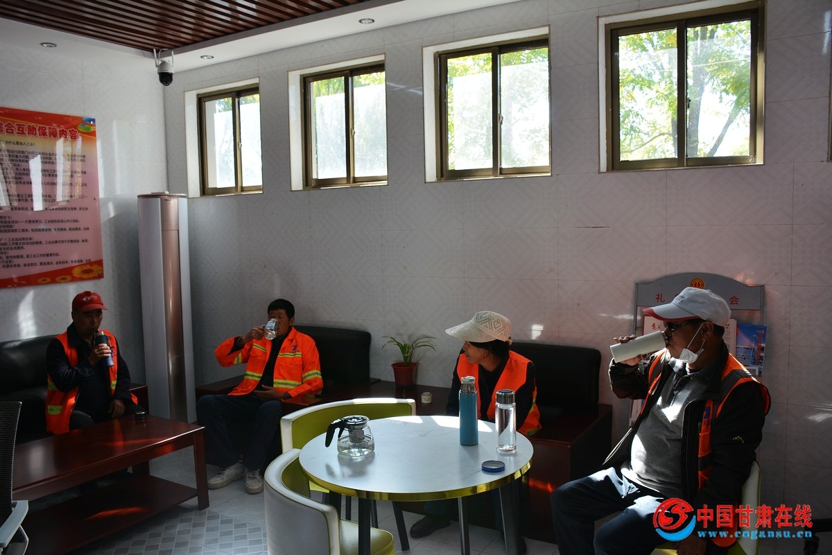 中国甘肃在线礼县讯(通讯员:王喜平)10月23日中午礼县环卫工人,在礼县水上公园爱心驿站,喝水休息、读看《甘肃工人日报》。礼县工会专人看管爱心驿站,为户外工作者开放服务,提供充电、休息喝热水服务。还为户外劳动者提供精神食粮,休息时间还可以读书看报,丰富充实户外劳动者精神文化生活。让阅读成为亮点户外劳动者心灵的灯塔。爱心驿站不仅成为劳动者,遮风挡雨、喝水歇脚休息的地方,更是劳动者休憩的心灵港湾,也是汲取知识提升自我学习党的方针政策重要阵地。树立“听党话、跟党走、感党恩”的伟大信念。图为读报的情景。