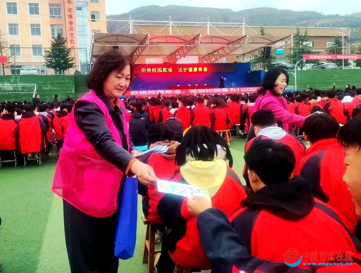 中国甘肃在线礼县讯 10月29日,礼县委统战部、县妇联、县司法局、甘肃恒谦律师事务所联合在礼县职业中等专业学校举办了“拒绝校园霸凌 法护健康青春”陇原巾帼普法校园行活动。