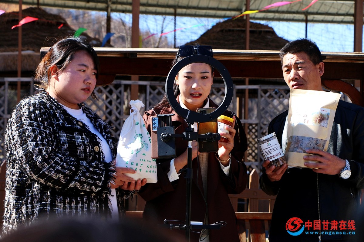 中国甘肃在线礼县讯 11月6日,礼县崖城镇中条祥泰种植养殖农民专业合作社通过线上直播销售当地农特产品。在“双11”到来之际,礼县大力组织县内商家和农民专业合作社,抢抓机遇推出各种特色农产品,加大销售力度,增加经济收入。 薛小平 摄