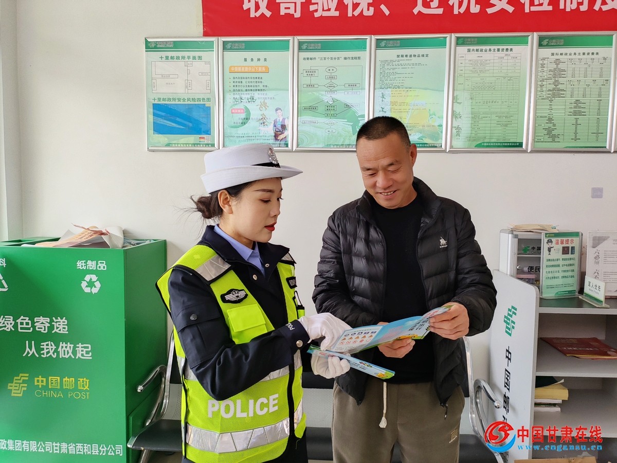 中国甘肃在线西和讯 为进一步加强农村地区道路交通安全宣传教育,强化农村居民道路交通安全意识和自我防范意识,营造安全、有序、文明、畅通的道路交通环境。近日,西和县公安局交警大队联合中国邮政西和县十里镇河沟村客货邮综合服务站积极开展道路交通安全宣传教育活动,共筑交通安全防线,助力辖区交通环境持续向好。
