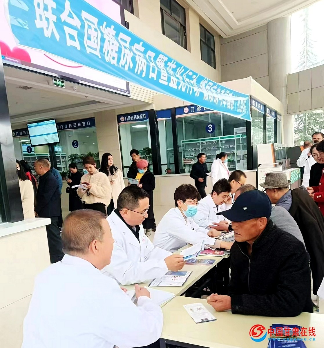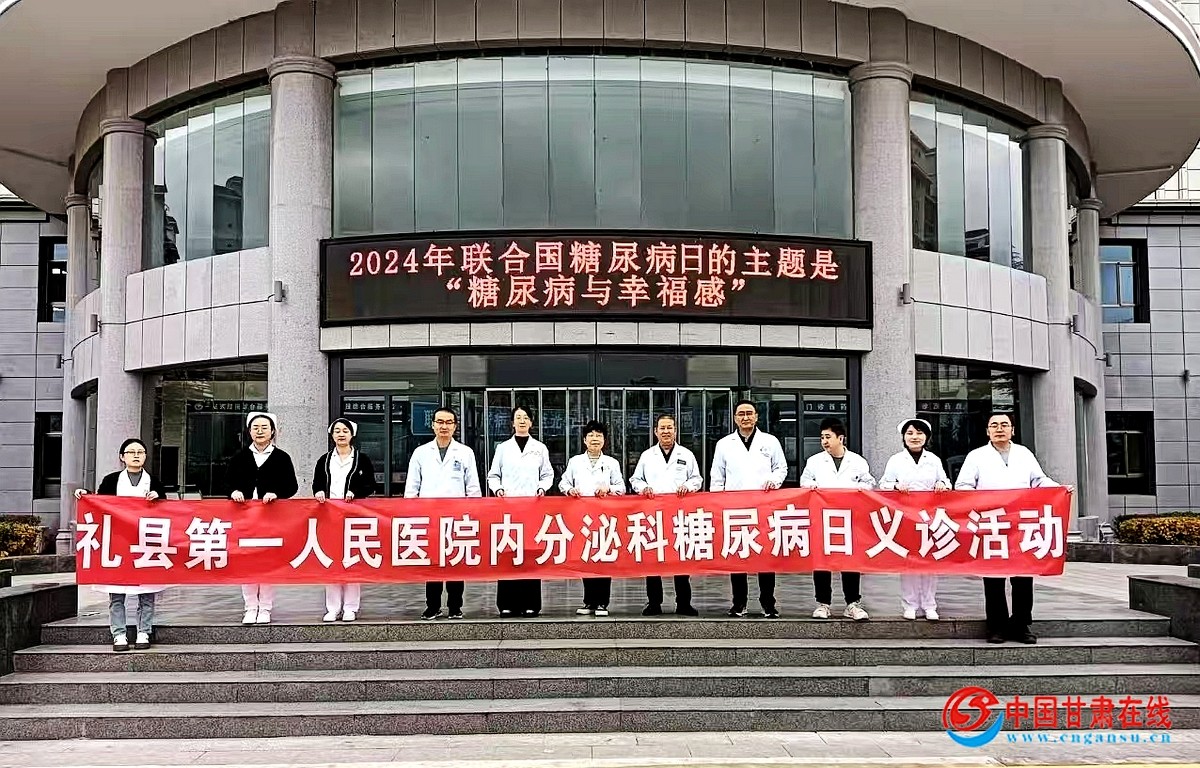 中国甘肃在线礼县讯 11月14日是第18个“联合国糖尿病日”,今年的宣传主题是“糖尿病与幸福感”,旨在倡导将提高糖尿病患者的生活质量作为糖尿病健康服务的核心,促进患者享有健康的生活。当天,礼县第一人民医院举办“联合国糖尿病日”义诊宣传活动,旨在加强糖尿病防控知识的普及力度,提高广大人民群众的糖尿病防治意识,培养健康生活方式,降低糖尿病及其并发症的发生风险和危害。