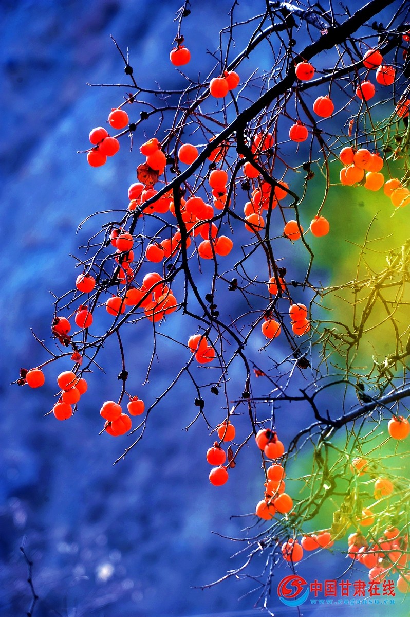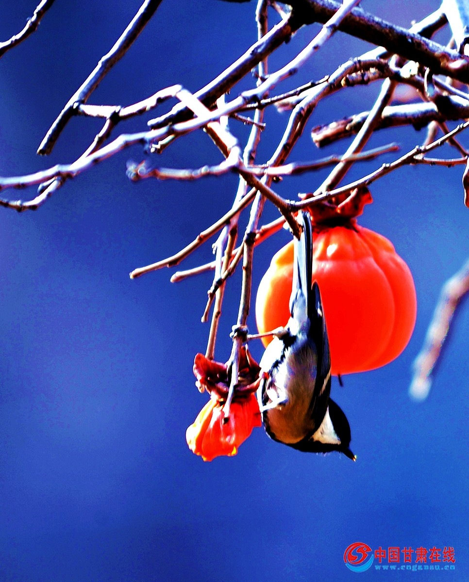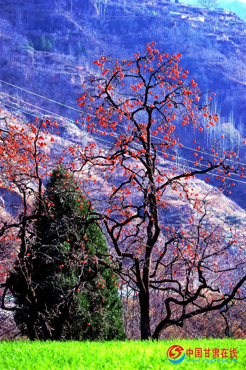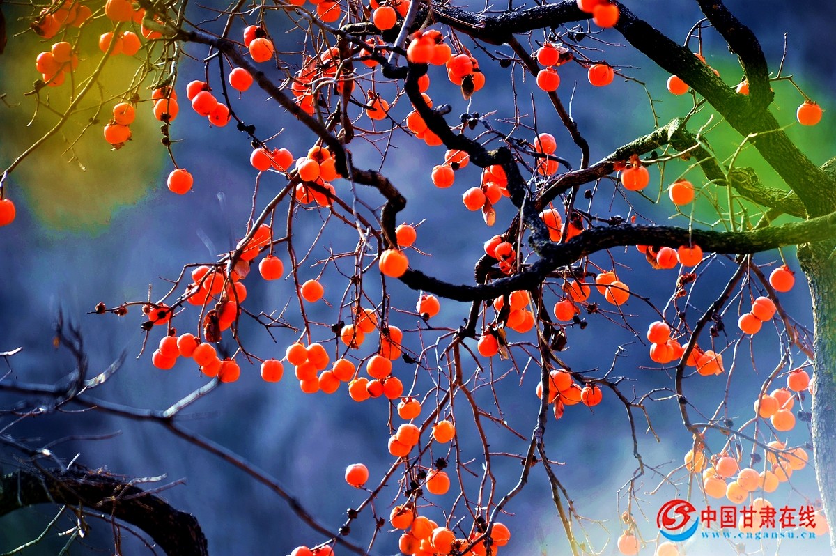 中国甘肃在线礼县讯 “色胜金衣美,甘逾玉液清”。11月27日,时入冬月,在礼县龙林镇李那村的袁各坝组,村民们正采摘成熟的柿子。当地百年的老柿子树上红艳艳的柿子,像一盏盏红红的灯笼,压弯了笔直的枝条。那颗颗红红的柿子,在寒风中摇曳舞动,犹如一面面小红旗在招展,分外俏丽惹眼。