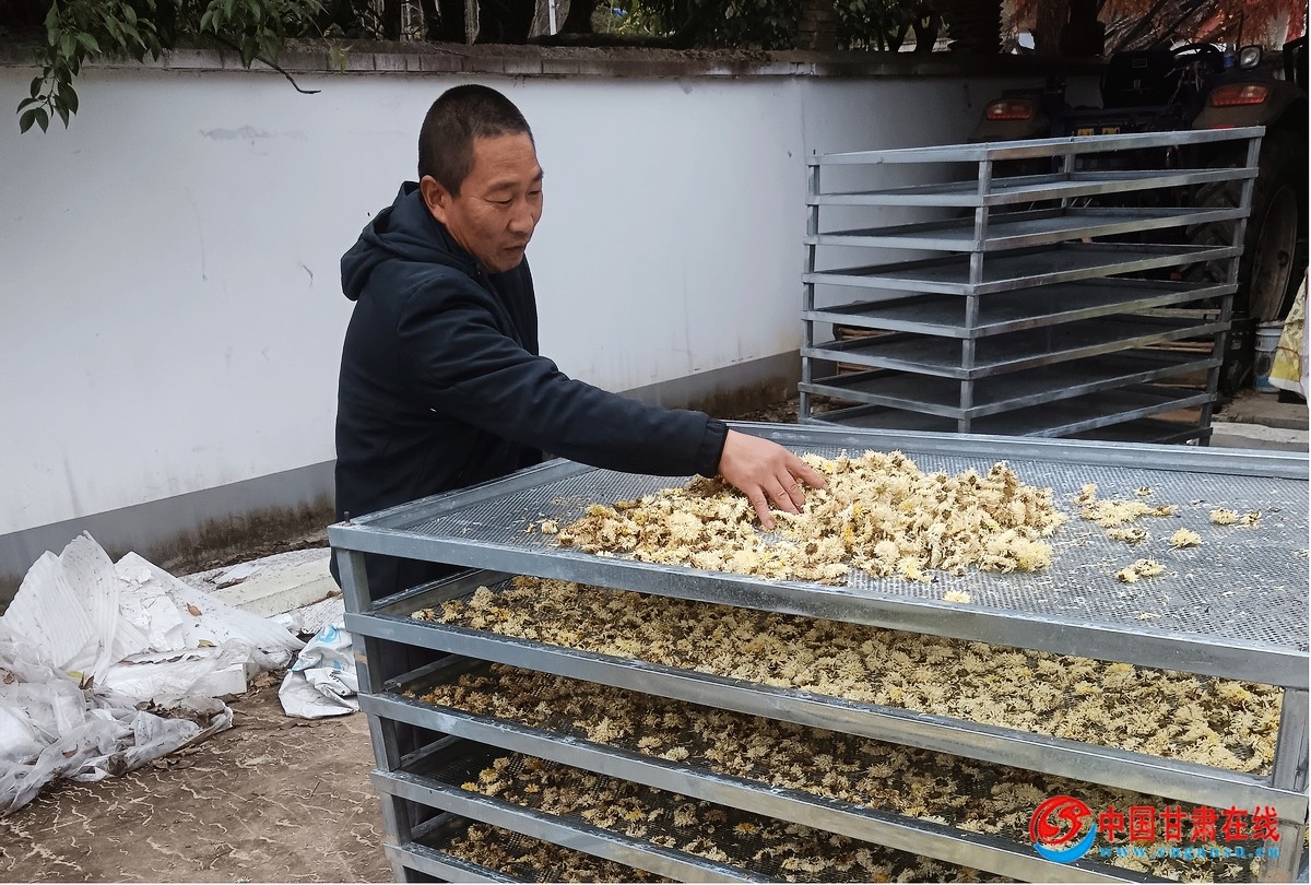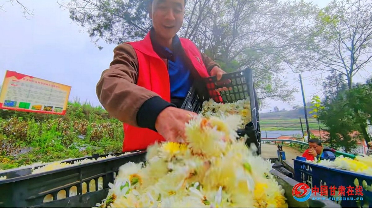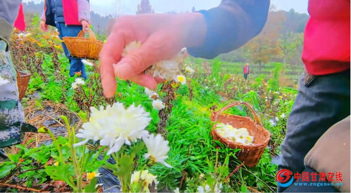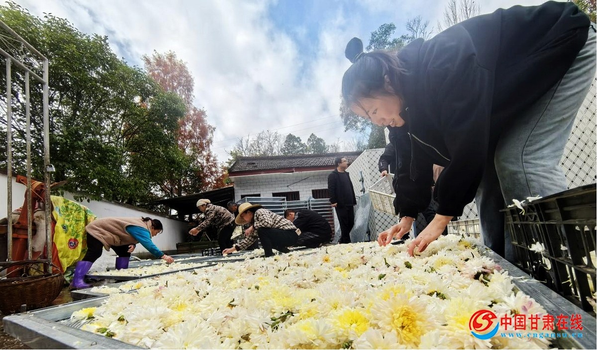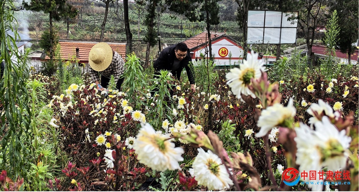 中国甘肃在线两当讯(通讯员:李虎)近日,两当县显龙镇川头村新栽植的100余亩菊花迎来了丰收。放眼望去,种植示范点一片片黄白相间的菊花恣意怒放,一丛丛、一簇簇,扮靓了深秋的田野,远远就能闻到菊花散发出的阵阵清香。小菊花不仅扮靓了乡村田野,还带来新的致富渠道。