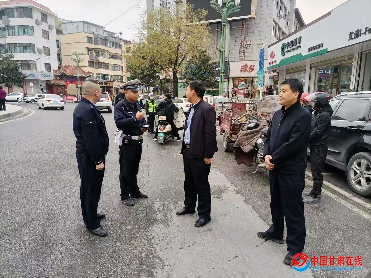 中国甘肃在线武都讯 武都区公安局党委委员、交警大队大队长张斐与教导员张刚率队,对城市交通管理执勤执法工作展开深入督导检查,旨在进一步规范执法行为,确保道路畅通有序。