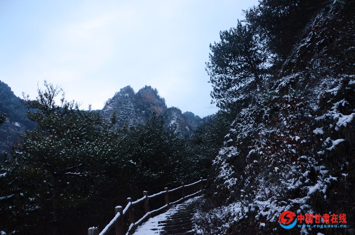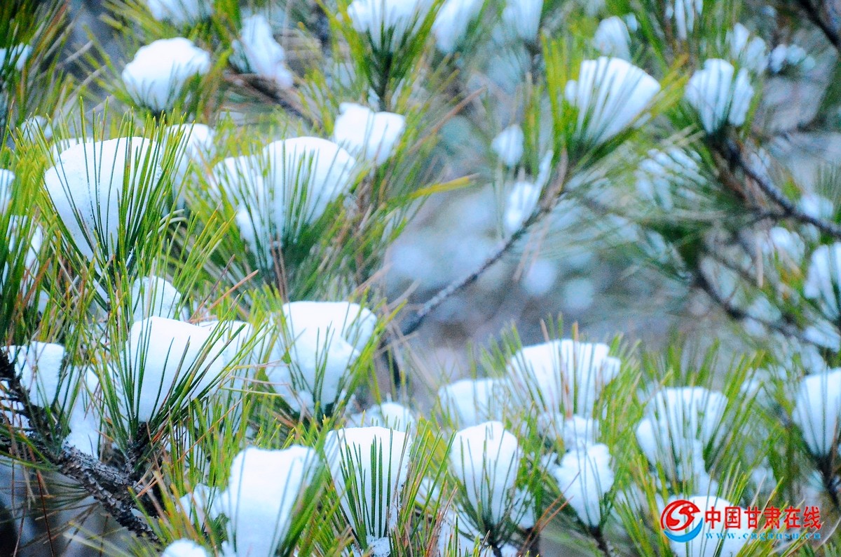 中国甘肃在线礼县讯 “忽如一夜春风来,千树万树梨花开。”近日,甘肃省陇南市礼县古八景之一的翠峰山迎来了冬日的第一场雪。松柏草木、殿宇楼阁皆被点染,冬雪如花,在枝头盛放,沿途小径处处是景,漫天的雪花下暗藏着盎然生机,漫游其中,既在雪海,亦如花海,令人倾醉,妙不可言。
