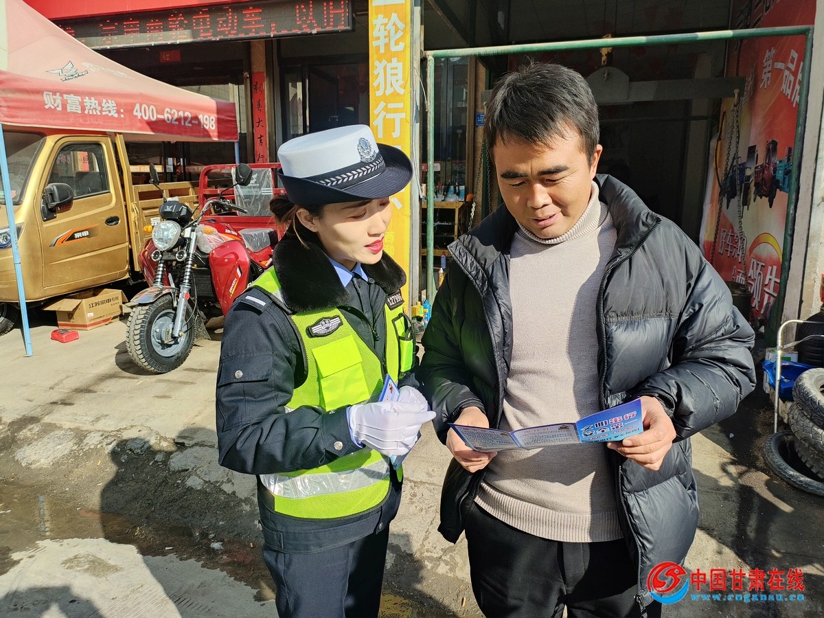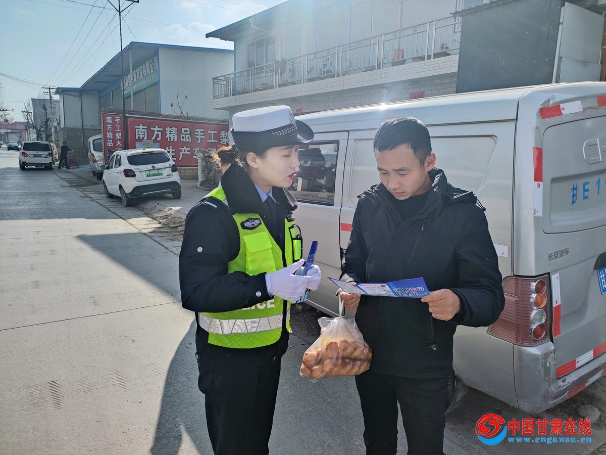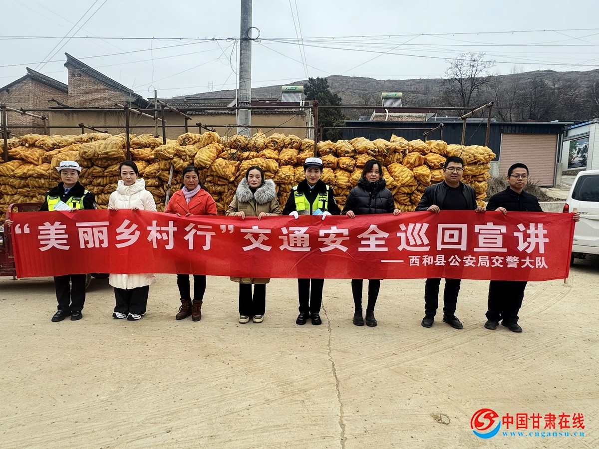 中国甘肃在线西和讯 为深入贯彻落实交通安全“冬季行动”,全面开展交通安全宣传教育工作,提升农村地区广大群众交通安全意识和自我保护意识,有效预防和减少道路交通事故的发生。12月24日,西和县公安局交警大队宣传民警走进辖区长道镇水泉村,开展“美丽乡村行”交通安全宣讲活动。