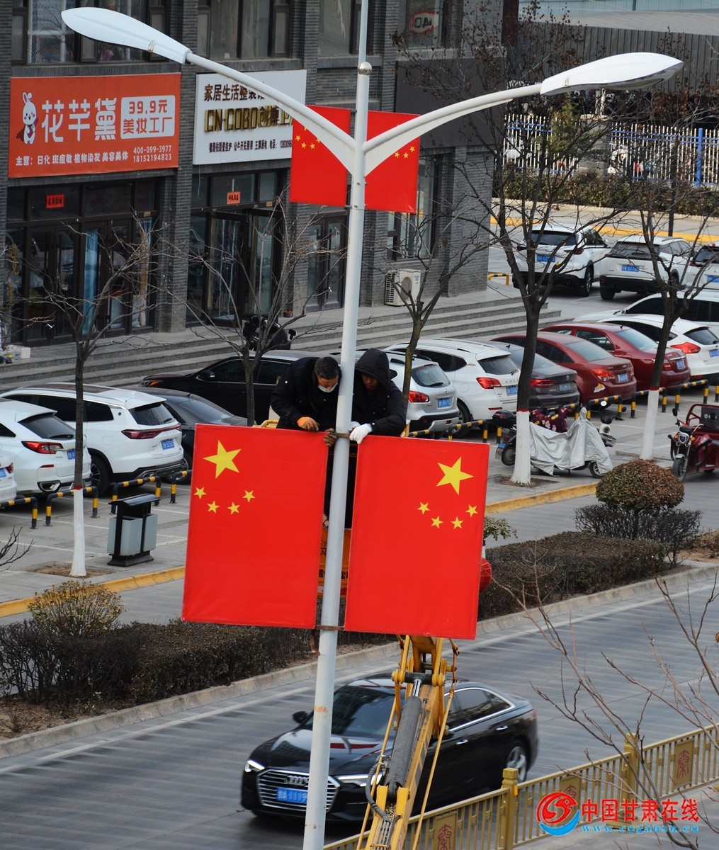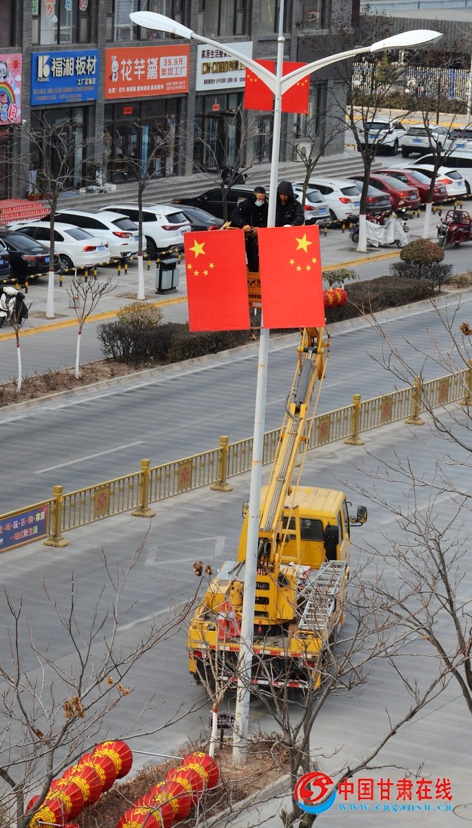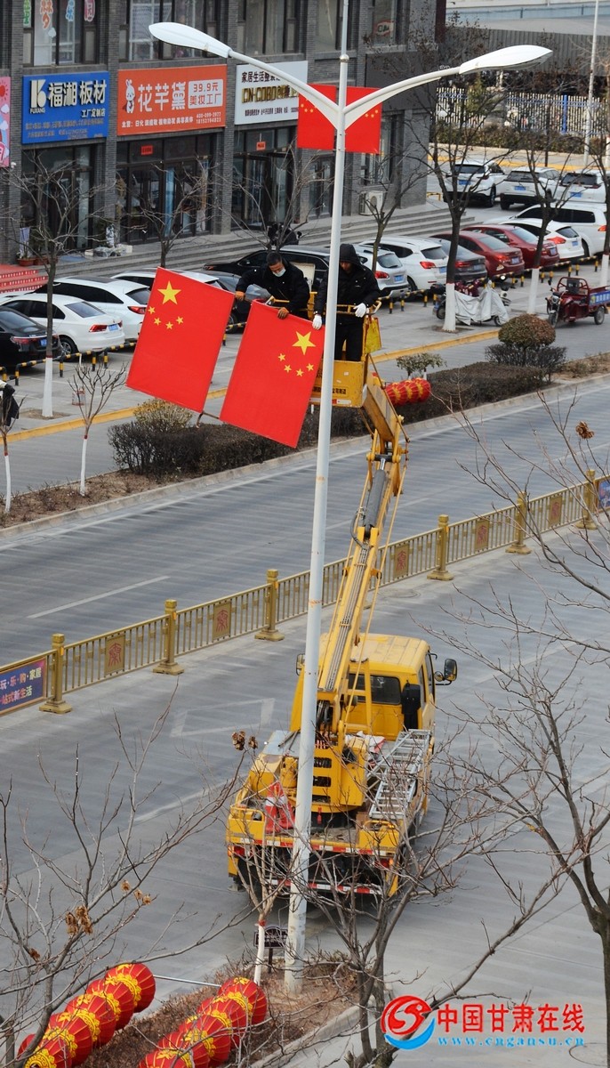 中国甘肃在线礼县讯(通讯员:王喜平)俗话说过了腊八就是年,腊八各地年味渐浓。连日来,礼县工作人员在大街小巷张灯结彩喜迎新春佳节, 街道公园工作员忙绿装挂国旗彩灯、挂灯笼,亮化美化城市街道。喜迎蛇年新春佳节。图为工作人员悬挂国旗装彩灯时的情景。