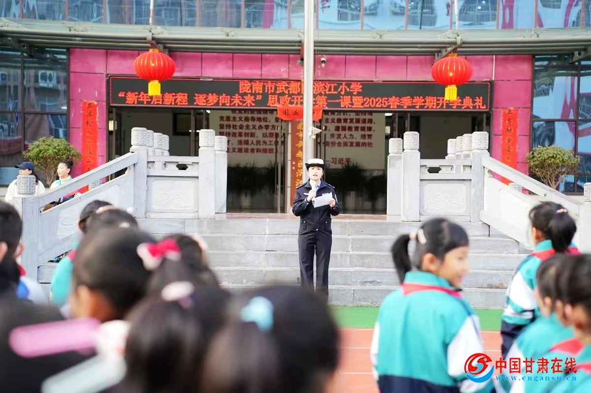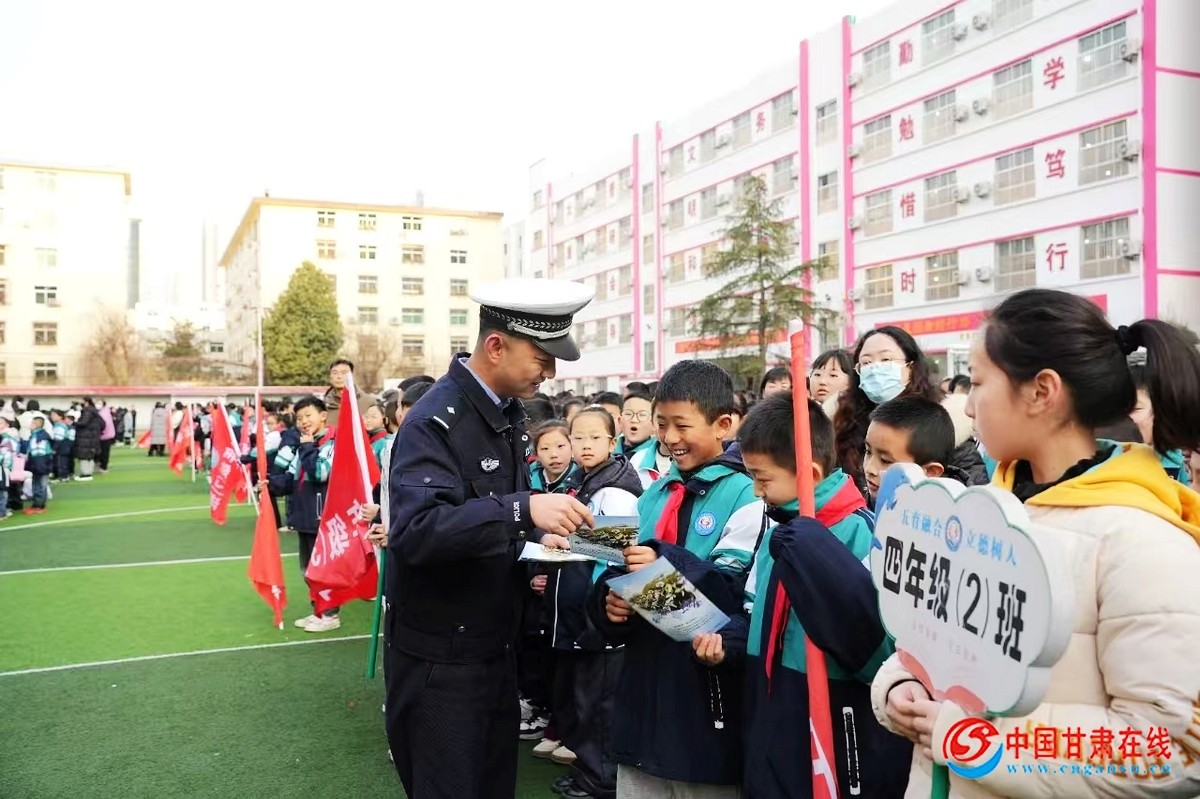 中国甘肃在线武都讯(通讯员张林海)为全力开展春季校园交通安全宣传教育,进一步培养学生“知危险、会避险”交通安全意识和自我保护能力,预防和减少涉学生交通事故的发生。2月25日,武都区公安局交警大队走进武都区滨江小学开展“开学第一课”交通安全宣传活动。