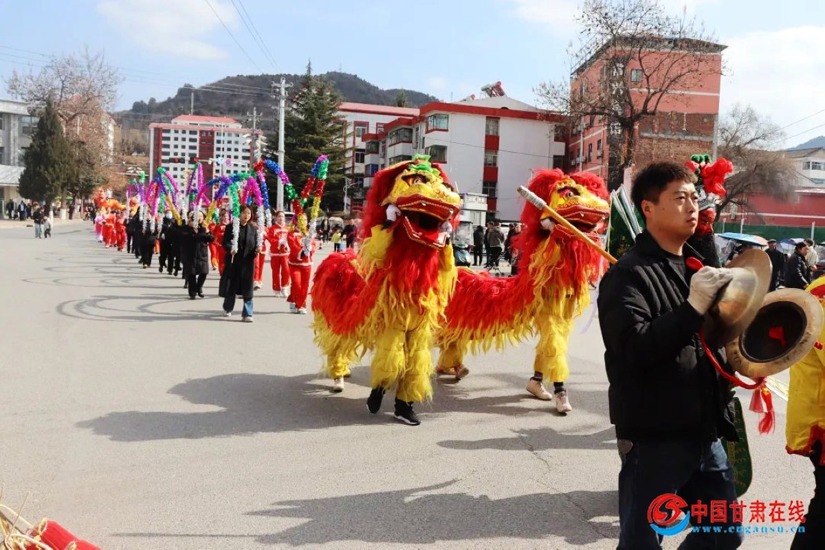 中国甘肃在线两当讯 舞龙舞狮呈祥瑞,旱船秧歌庆新春。2月10日,两当县城关镇社火队参加全县社火汇演,为全县人民献上一场精彩纷呈的民俗文化盛宴。