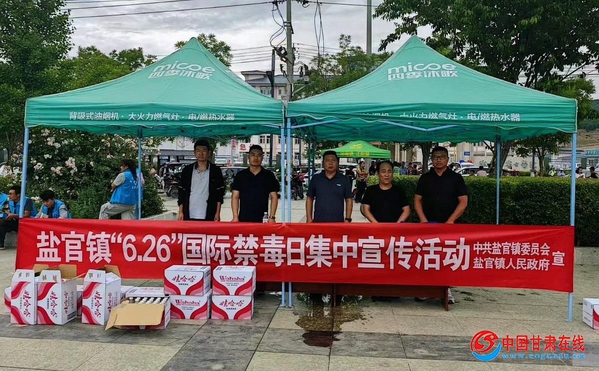 中国甘肃在线礼县讯 为进一步增强广大群众远离毒品能力,普及禁毒知识,传播拒毒理念,引导群众主动参与禁毒斗争,在“6.26”国际禁毒日即将来临之际,6月18日,礼县盐官镇党委政府组织镇平安法治办及司法所干警和派出所民警等多部门力量,在县二中门前广场开展“6.26”国际禁毒日集中宣传,不断推动了辖区全民禁毒宣传月活动深入开展。