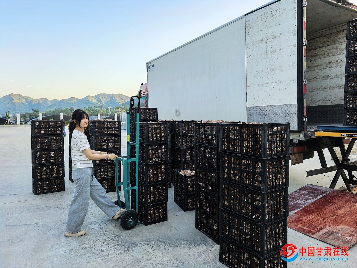 中国甘肃在线两当讯 时下,走进两当现代食用菌产业园,只见一朵朵花菇圆润饱满、竞相绽放,空气中弥漫着阵阵鲜香。工人们正忙着采菇、装筐、分选、转运、称重,现场一派繁忙景象。