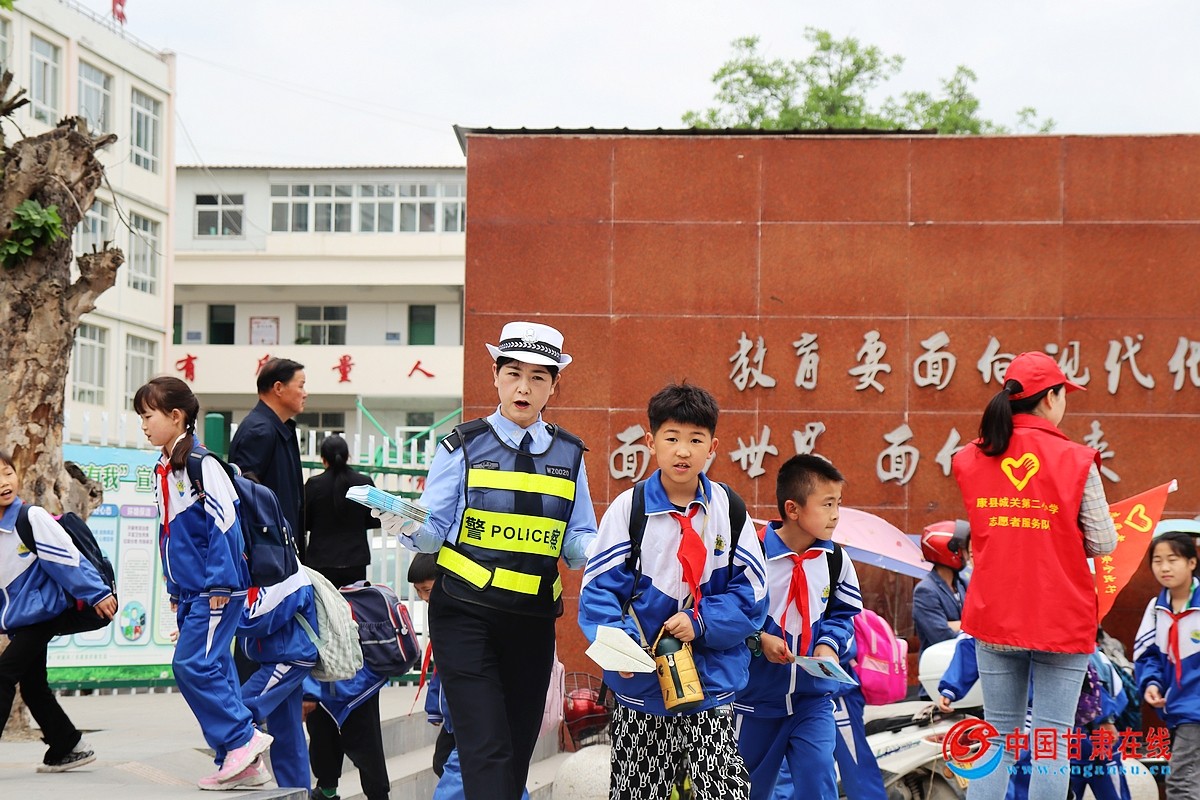 中国甘肃在线康县讯 每天清晨与傍晚,在康县辖区的各中小学、幼儿园门前,一抹抹“荧光绿”准时出现。他们指挥交通、疏导车流、护送学生,成为校园门口一道温暖而坚实的安全屏障。为切实保障学生上下学交通安全,康县公安交警立足职能、主动作为,构建“高峰勤务+警校联动+宣传教育”三位一体常态护学机制,全力筑牢校园周边道路交通安全防线。