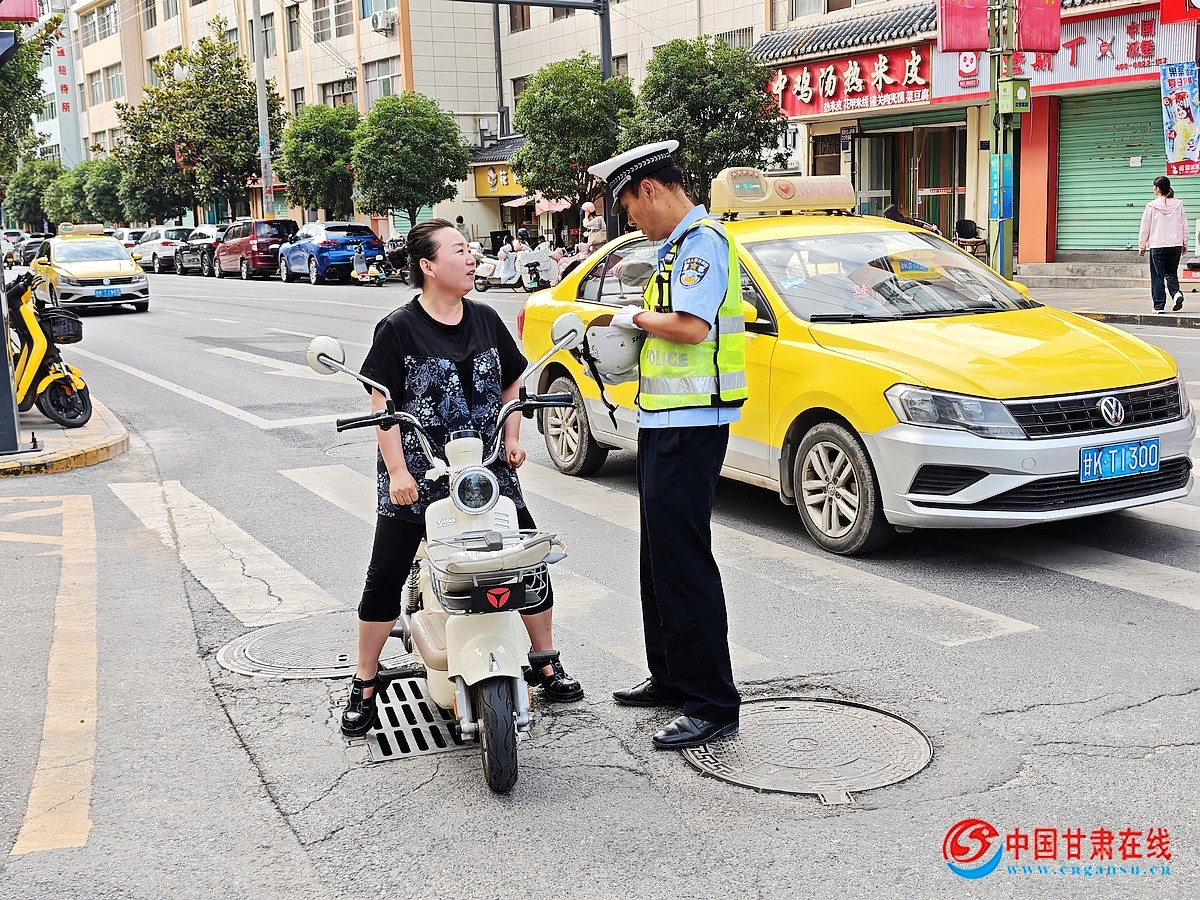 中国甘肃在线康县讯 为进一步加强道路交通安全管理,规范电动车、摩托车通行秩序,预防和减少交通事故的发生,7月1日早高峰期间,康县公安交警根据早高峰交通流量和违法行为特点,科学部署警力,在城区的主要路口、学校周边、农贸市场附近等人流等重点区域设置执勤卡点,采取定点检查与流动巡逻相结合的方式,对过往的电动车、摩托车进行逐一检查。