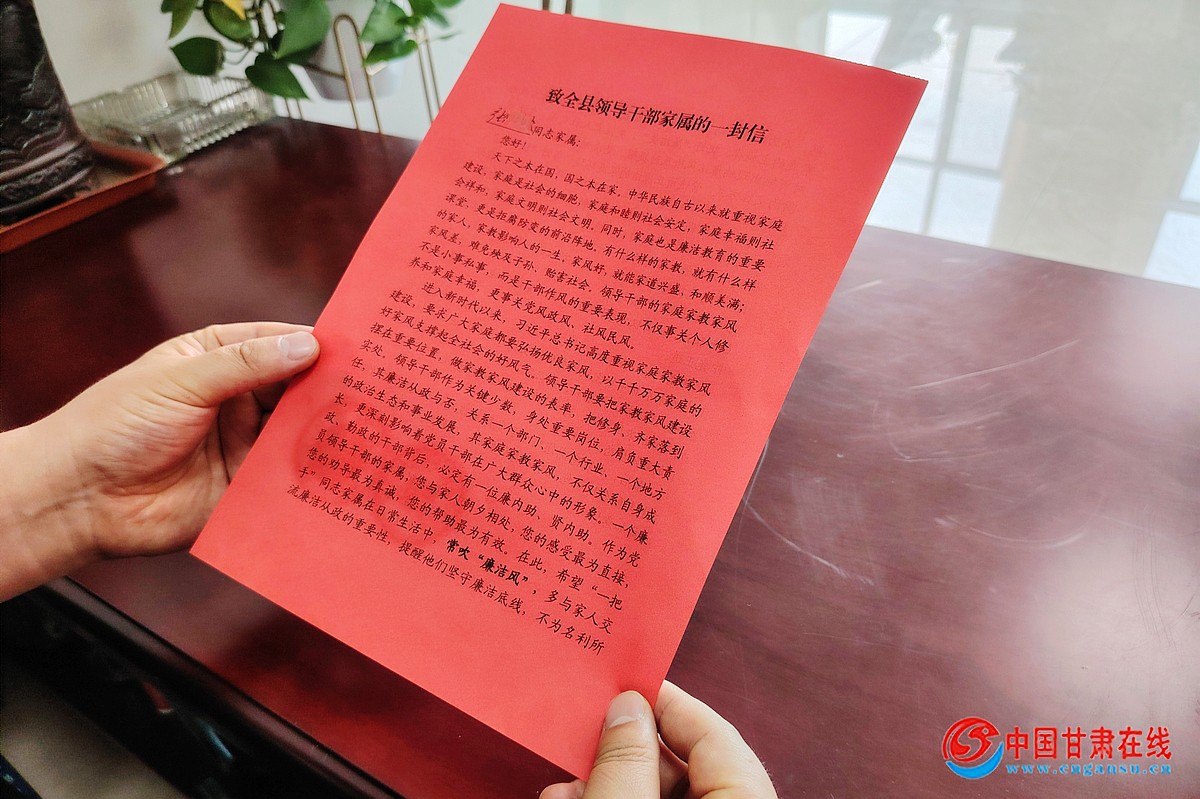 近期,陇南徽县纪委监委紧盯“关键少数”,充分发挥家庭助廉作用,向全县800余名副科级以上领导干部家属发出《致全县领导干部家属的一封信》,延伸廉洁防线至“八小时之外”。