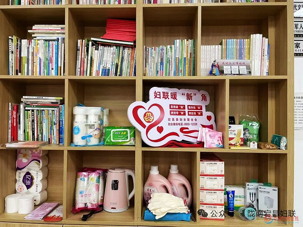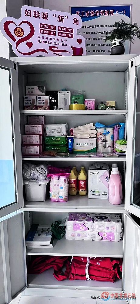 今年来,宕昌县妇联聚力推进娘家人暖“新”角建设,加强对新经济组织、新社会组织、新就业群体女性的关爱,目前,已依托城关镇立界村党群服务中心、县益民社会工作服务中心、新就业群体驿站3处女性从业者集中场所,建成首批服务阵地。每个暖“新”角均挂有统一标识牌,货架上整齐摆放着充电器、暖宫贴、雨伞、冰袖等日常用品,创口贴、口罩、消毒湿巾等防疫应急物资,以及《妇女权益保障法》、《反家庭暴力法》、《未成年人保护法》等法律知识和“两癌”防治宣传手册等政策资料,从生活所需到权益咨询,覆盖女性实际需求。