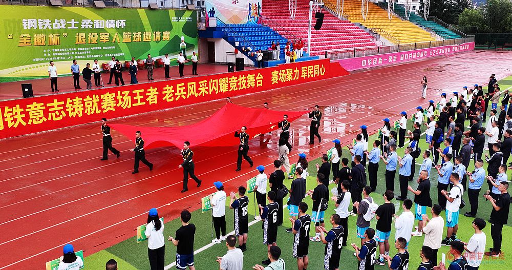 中国甘肃在线宕昌讯 军歌嘹亮,豪情激荡。8月10日,宕昌县体育中心内气氛热烈非凡,宕昌县首届“金徽杯”退役军人篮球邀请赛在此震撼开场。激昂的国歌声中,所有人庄严肃立,拉开了这场体育盛会的大幕。