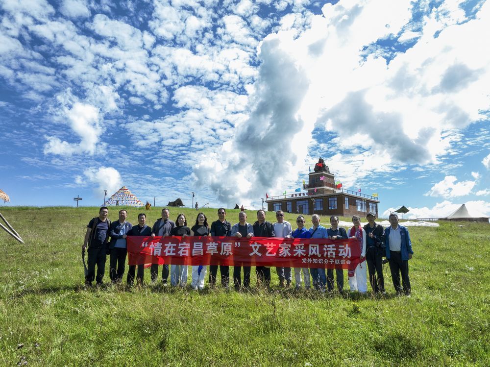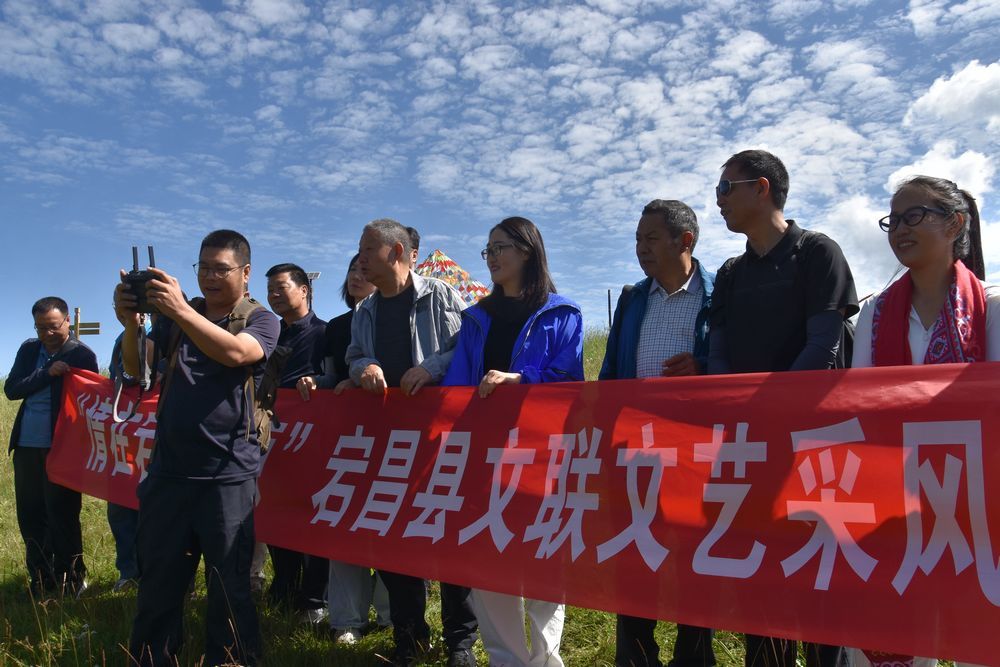 中国甘肃在线宕昌讯 蓝蓝的天上白云飘,白云下面马儿跑。挥动鞭儿响四方,百鸟齐飞翔……8月11日,宕昌县统战部、县文联组织全县文艺家开展“情在草原间”文艺采风创作活动,县知联会、新联会一并参与。文艺家们走进贾河滩子草原观景台、天鹅湖、车拉云海五个咀景区,以实地探访形式感受生态之美,草原之美,为文旅融合与乡村振兴注入文化动能。