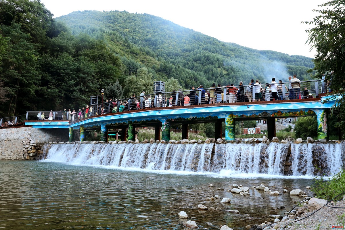 入夏以来,位于官鹅沟景区立界村“三叠湖”上,一座“网红桥”吸引着众多游客前来“打卡”,每到傍晚时分,村旅游合作社组织的文化演艺精彩展现,专业人员和游客同台表演,演唱、歌舞、器乐,沉浸式体验拉满现场。