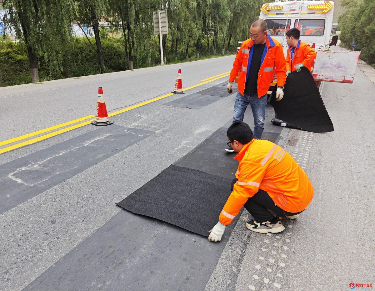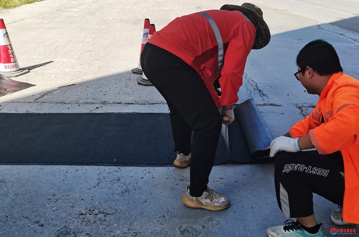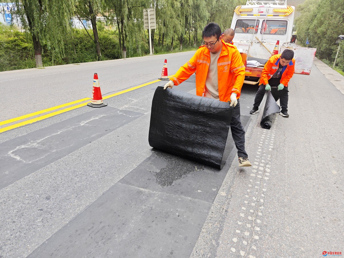 中国甘肃在线礼县讯 当前,正值雨季多发期,为保障道路安全畅通、防止雨水渗透路基致路面出现坑槽破损,近日,陇南公路事业发展中心礼县公路段在国道247线(礼县境内),运用“四新技术”抗裂贴处理沥青路面。施工时,工作人员先清扫路面,确保抗裂贴粘结稳定;后续还需关注车辆行驶对道路的冲击,定期检查抗裂贴使用效果,以及其抗拉强度、断裂伸长率、粘结强度等关键性能,以保障道路安全畅通。该抗裂贴可有效防止路面裂缝扩展、阻断雨水渗入路基,且使用简单、成本低,能显著延长路面使用寿命。
