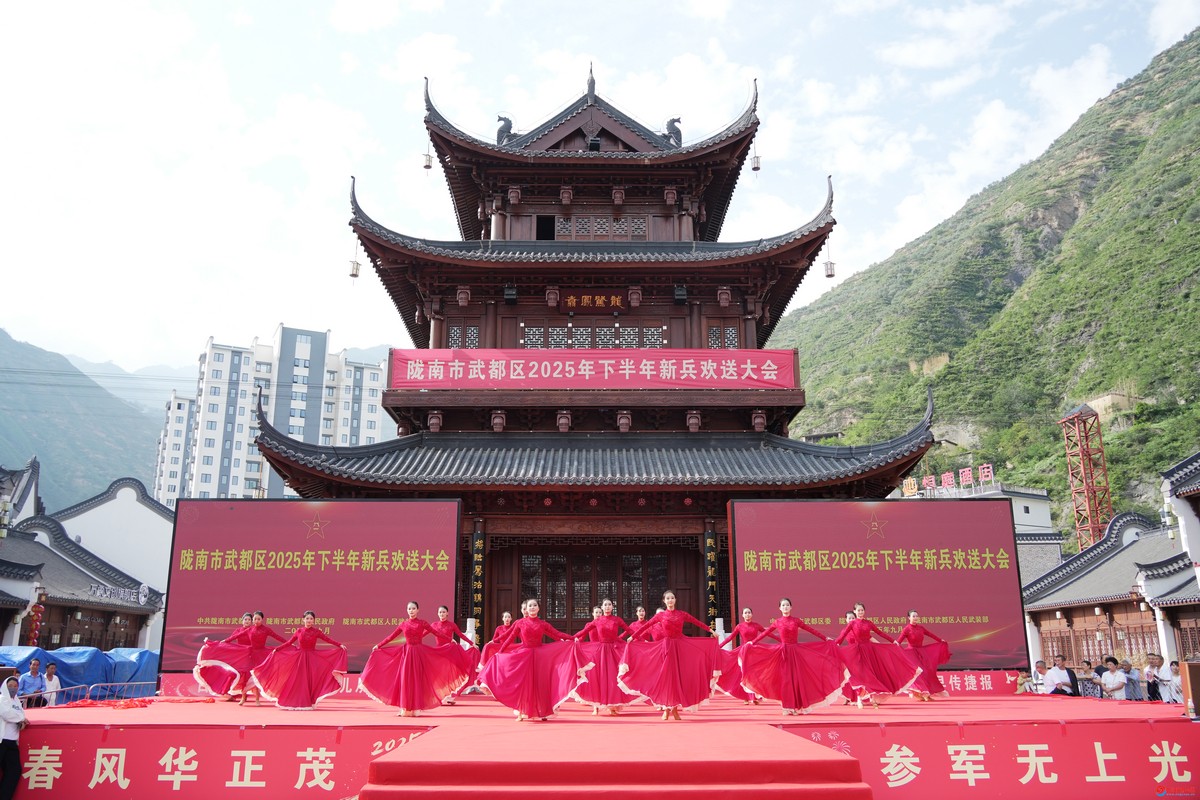 中国甘肃在线武都讯(通讯员 石晨 胡本平)金秋送爽,号角催征。9月15日,武都区举行2025年下半年新兵欢送大会,为即将奔赴火热军营的武都儿女壮行。长风万里送秋雁,铁血儿郎赴边关。祝愿新兵们把武都山的巍峨化作脊梁,把白龙江的奔腾融进血脉,披星戴月凯旋日,家乡以最高礼仪再奏凯歌!