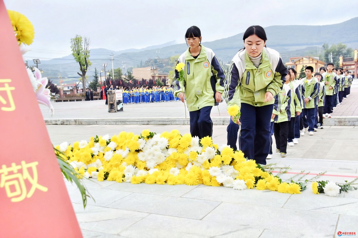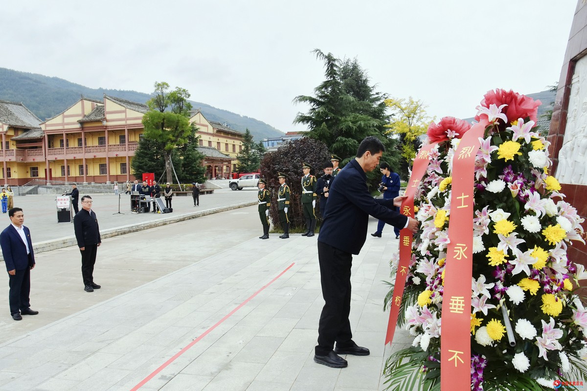 中国甘肃在线宕昌讯 9月30日上午,宕昌县在哈达铺红军长征纪念馆纪念碑前隆重举行各界向人民英雄敬献花篮仪式,全县各界代表怀着崇敬之心齐聚,缅怀革命先烈、传承红色精神。