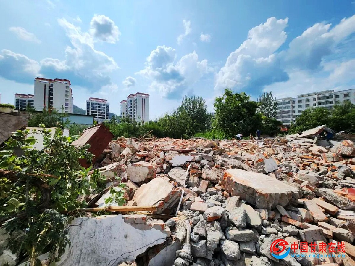 中国甘肃在线两当讯 八月的两当,蝉鸣裹着热浪掠过街巷,日月广场片区的工地上,挖机的轰鸣声里,一座座旧房子轰然落地,续写着新的故事。两当县城关镇后院一株新移植的猕猴桃树正舒展着嫩绿的枝叶——这是昨天从张大叔日月广场老房子院子里移栽过来的。站在树下,城关镇执法队长李果擦了擦额头的汗,想起一个月前第一次敲开张叔家门时,那扇紧闭的门后,曾是整个片区最硬的“疙瘩”。