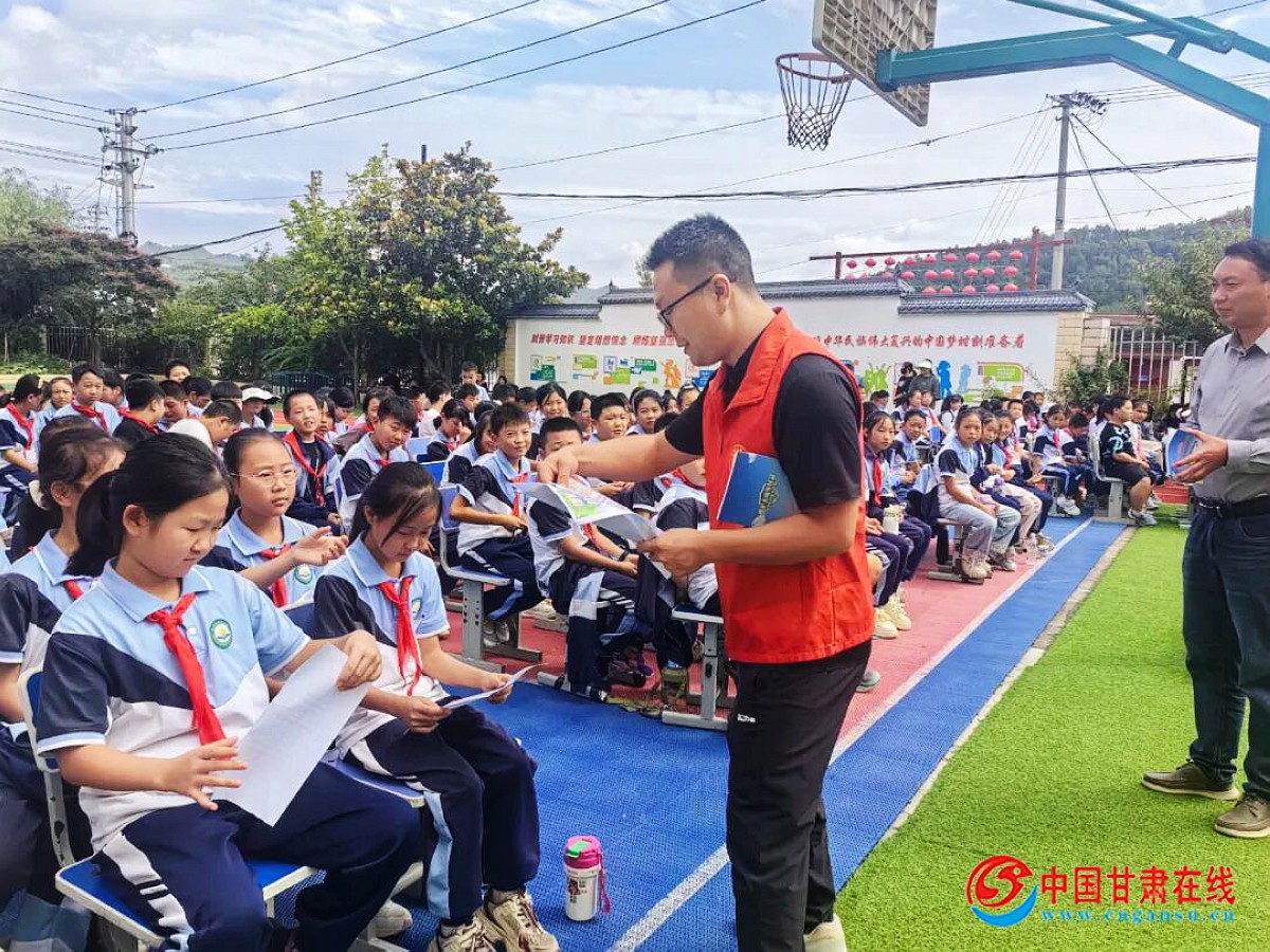 中国甘肃在线两当讯 9月3日,两当县城关镇组织司法所工作人员,走进香泉小学,开展“开学第一课”法治进校园宣讲活动,进一步提高未成年人法律意识和法治观念。