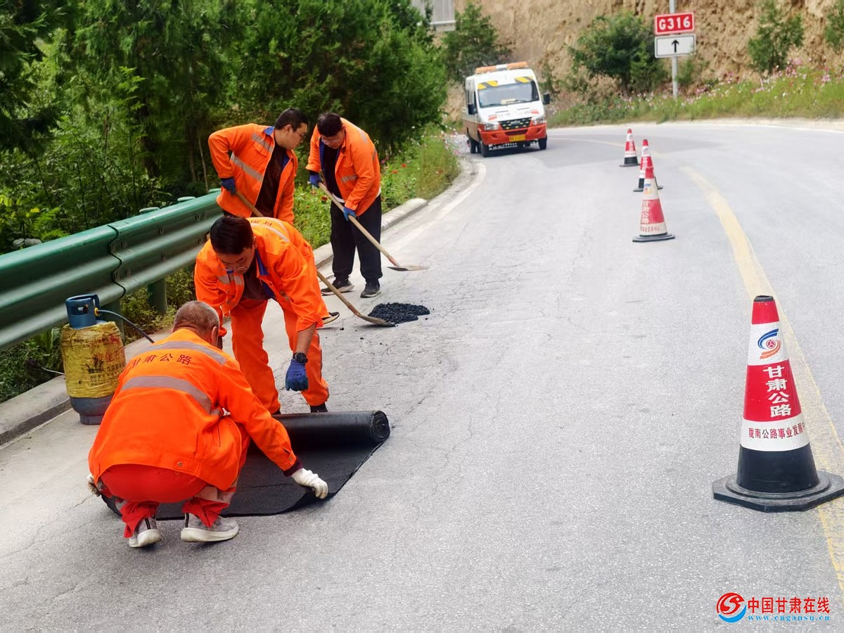 中国甘肃在线礼县讯 连日来,礼县由于持续降雨导致山体路面稳定性显著下降,道路发生落石、塌方,导致路面裂缝沉陷,严重影响道路交通行车安全。礼县公路段运用“四新”技术,抗裂帖、灌缝机快速及时处理路面病害,规范布设安全作业区,专人指挥交通,引导车辆减速避让,保证道路通行安全,为人民群众安全出行提供坚强保障。