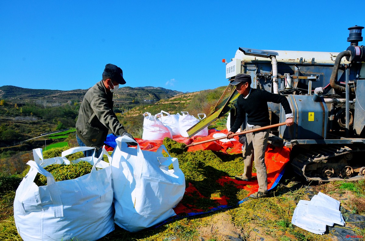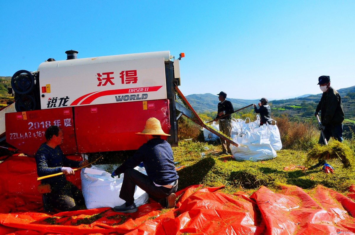 十月底的永坪镇,野菊花采收进入攻坚期,田间地头呈现出 “机械高效作业+人工精细配合”的繁忙图景:农户们穿梭在花丛间,熟练地收割、捆扎花枝。采收季每天吸纳 36 名劳动力,让群众在农闲时实现“家门口就业”。年家村农户年小东坦言:“一天干 8 小时能挣 100 多元,比外出打工自由,还能照顾家庭。” 与此同时,沃得锐龙打花机快速完成脱粒工序,160 四轮配套割晒机在梯田间灵活作业,杀青烘干设备高效处理鲜菊……总投入 260 万元的大中型农机设备,让采收效率大幅提升,为年产 600 吨干花的目标筑牢了硬件支撑。