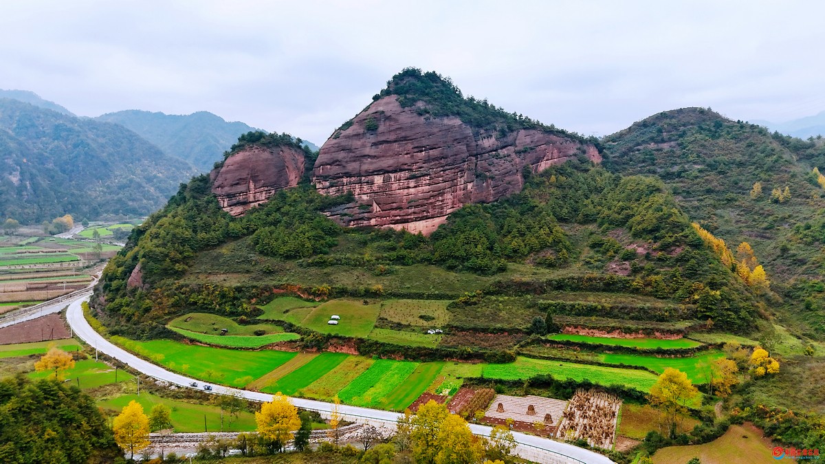 在礼县的地质长卷上,姊妹峰是一抹浓烈的赤红。深秋时节,经秋雨浸润后的丹霞岩壁愈发鲜亮,如大地遗落的胭脂盒,在层林尽染的背景里,勾勒出雄奇醒目的轮廓。