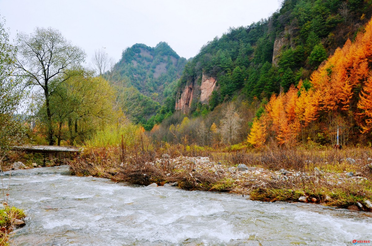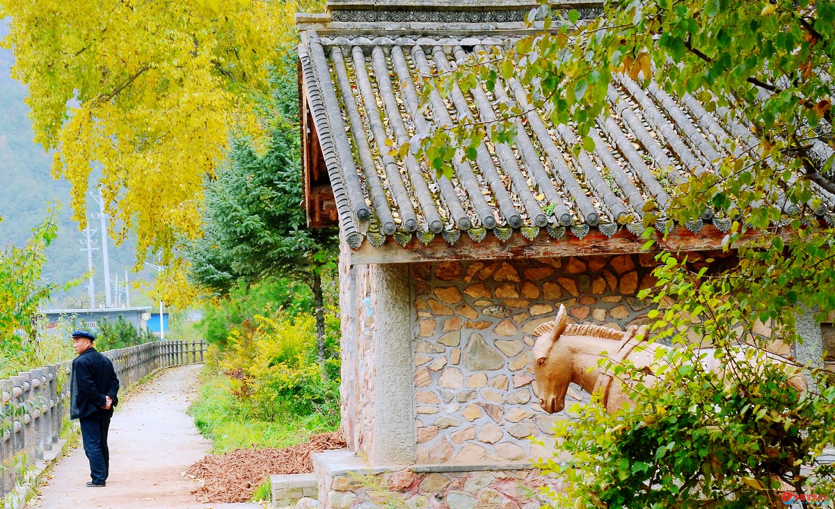 山脚下,溪流潺潺作响,清冽的浪花在石间跳跃,把山林彩影揉碎成流动的光斑。一座石拱桥静卧在溪流之上,像是在倾听秋的私语。风过林梢叶声簌簌,溪水潺潺不息,黄咀村的秋便在这声色交融里,成了一首读不尽的诗,每一行都溢满礼县上坪深秋的清灵与温婉。