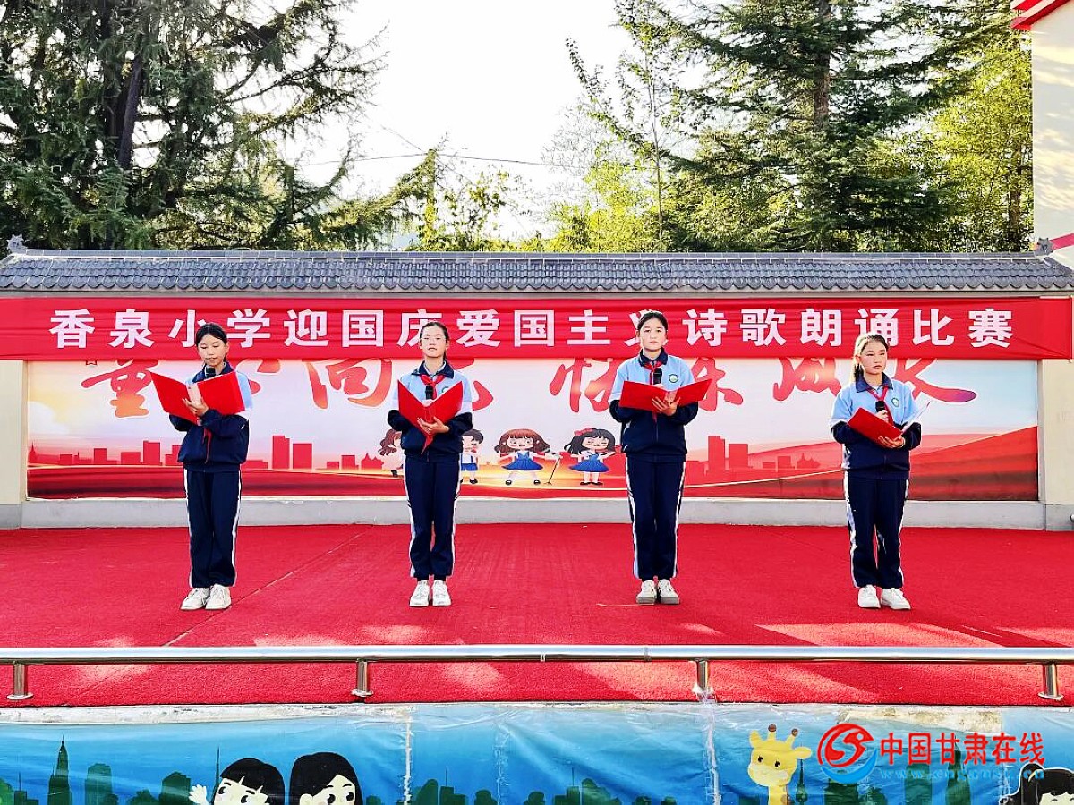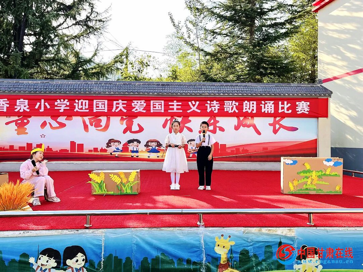 中国甘肃在线两当讯 为庆祝中华人民共和国成立76周年,弘扬爱国主义精神,加强少年儿童爱国主义教育与思政引领,让家国观念、爱国意识在孩子们心中牢牢扎根,9月30日下午,两当县城关镇香泉小学开展迎国庆爱国主义诗歌朗诵比赛。