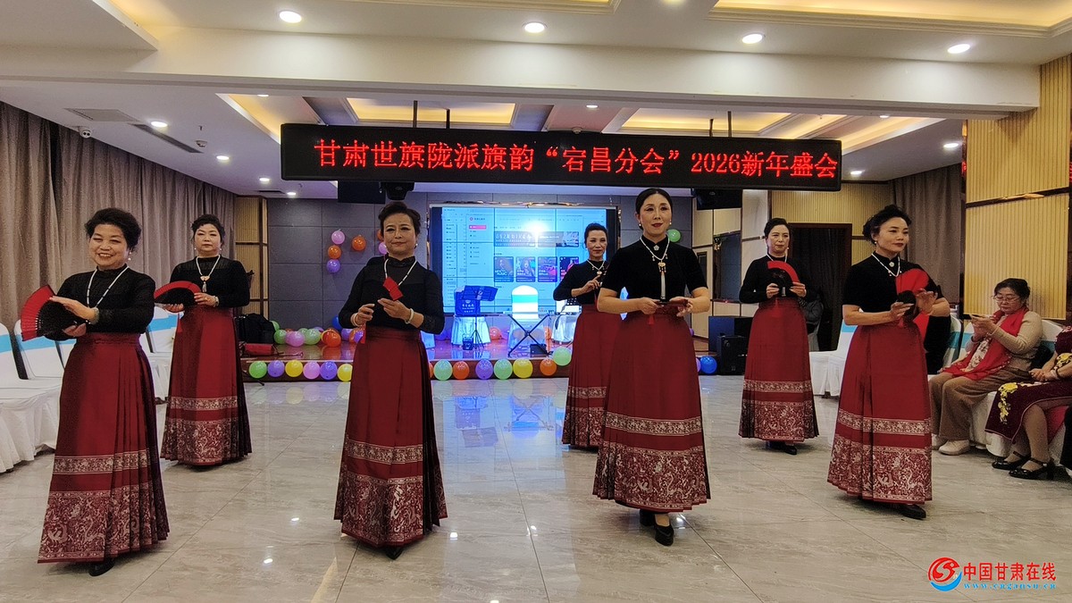 中国甘肃在线宕昌讯 冬阳暖照宕昌城,古羌大地漾新声。1月18日,甘肃世旗陇派旗韵“宕昌分会”2026迎新年会隆重举行,特邀嘉宾与会员姐妹们欢聚一堂,以旗为媒、以舞抒怀,在古典与新潮的碰撞中,演绎东方之美与巾帼风采。