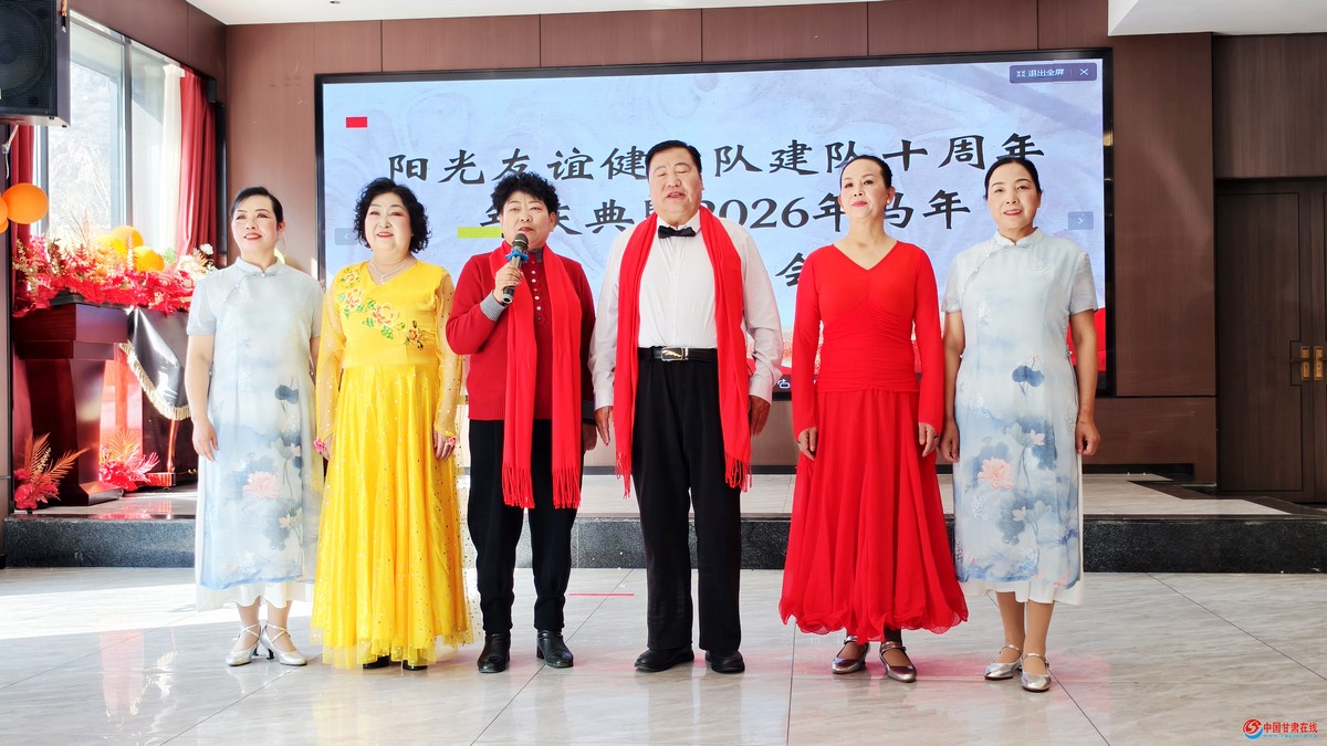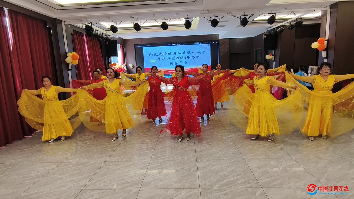 中国甘肃在线宕昌讯 “官鹅山水间,剪不断的情缘,娥嫚花开,歌声飘向云天外”,婉转的藏乡旋律萦绕耳畔……1月31日,宕昌县阳光友谊健身鸿雁音乐大厅暖意融融,歌声、舞步、欢笑声交织成一曲动人的迎春乐章。这支扎根基层的群众健身队伍,迎来了建队十周年的庆典,一群平均年岁不小的舞蹈爱好者,用热爱与坚守,舞出了晚年生活的绚烂,也舞出了邻里相伴的温情。