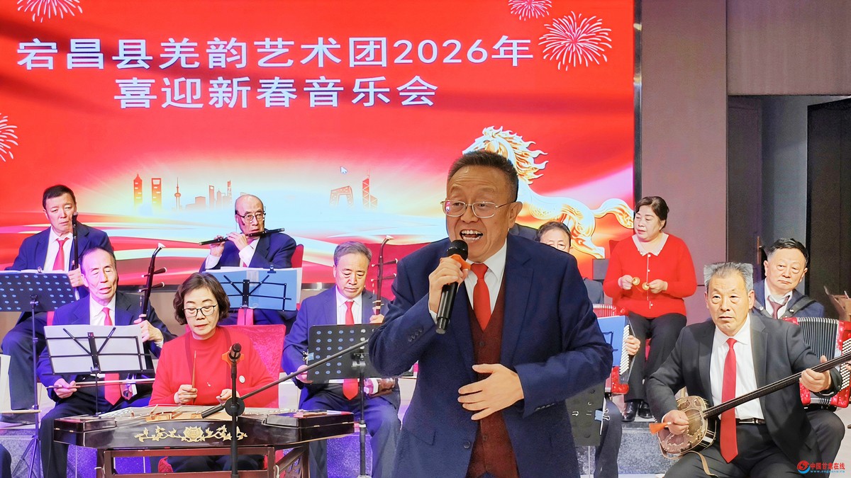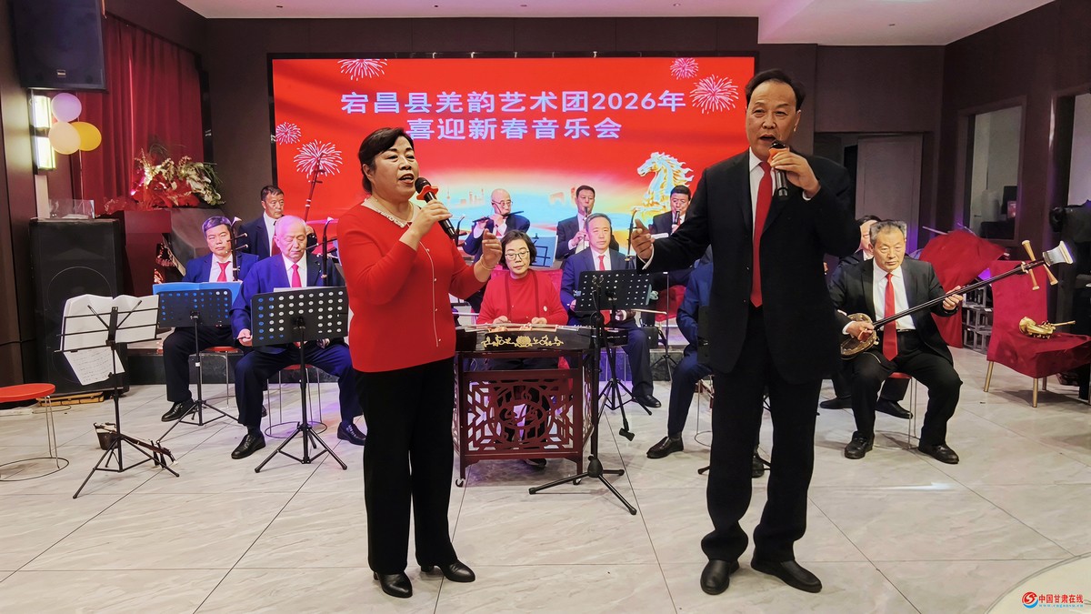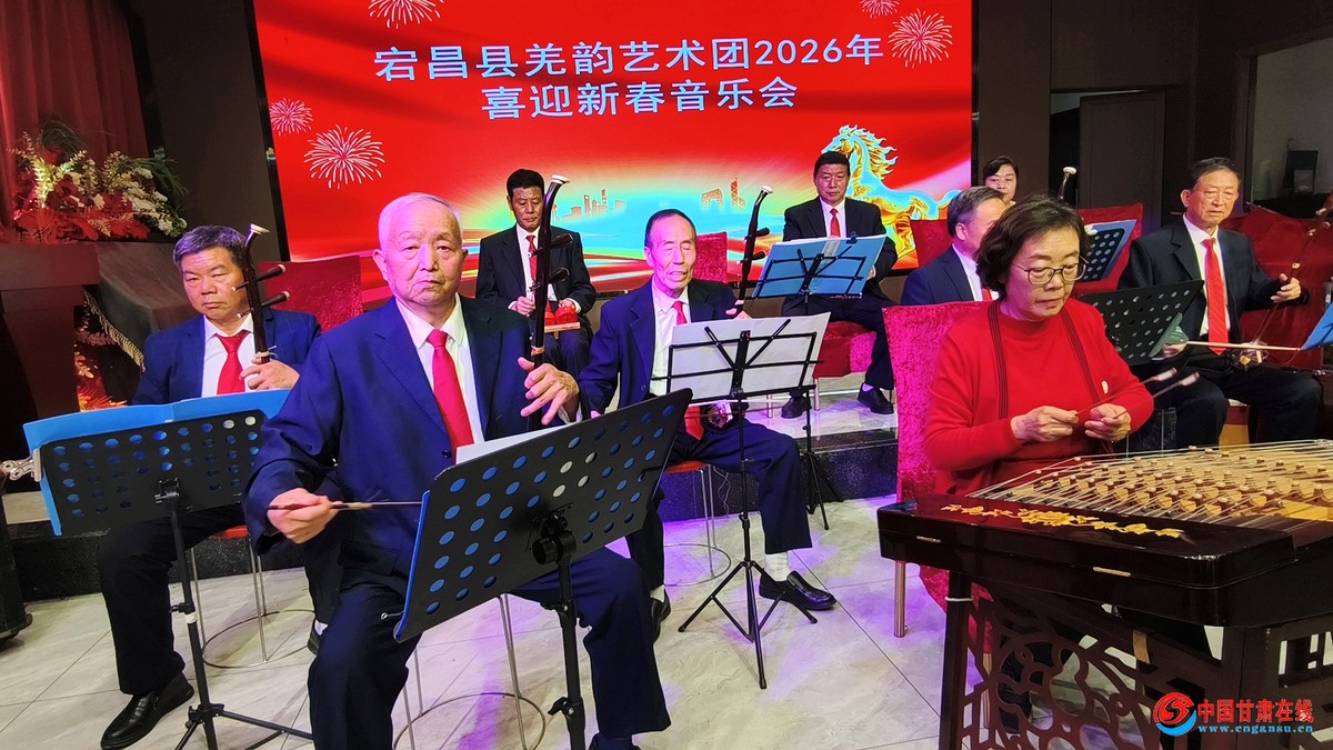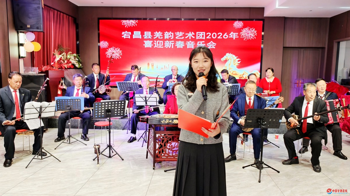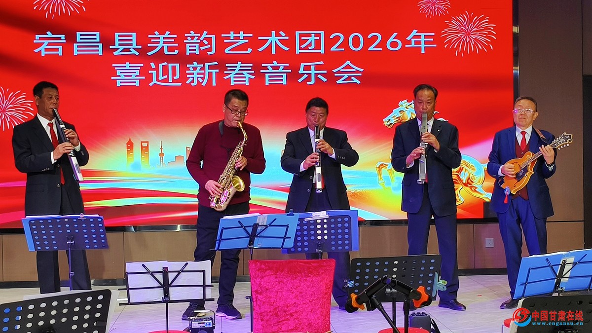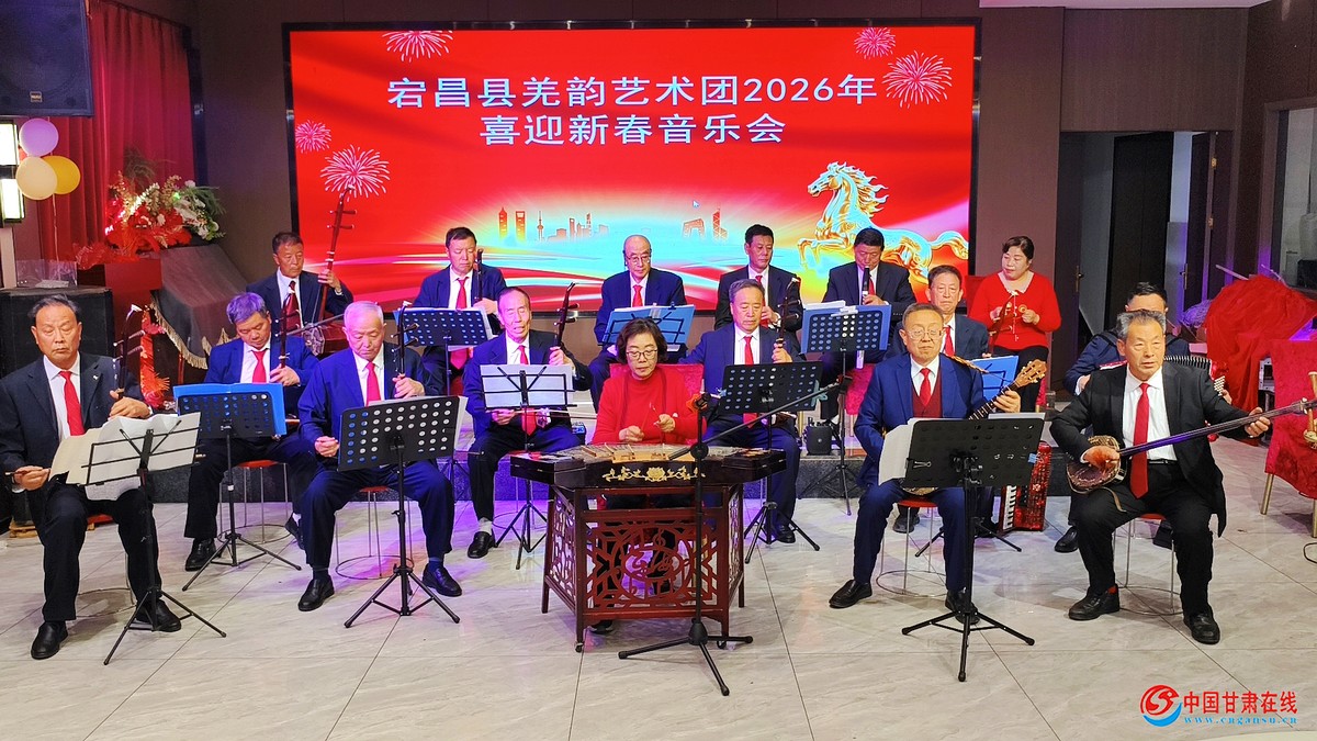 中国甘肃在线宕昌讯 文明过大年,新风润民心。2月6日,宕昌县雁鸿音乐大厅内乐声悠扬,宕昌县羌韵艺术团2026年喜迎新春音乐会在这里温情启幕。一曲器乐合奏《金玉满堂》欢快奏响,瞬间点燃全场热烈氛围;紧接着,《格桑拉》的美好祝愿随着乐手们指尖的流转飘向台下,为观众送上第一份新春祝福。