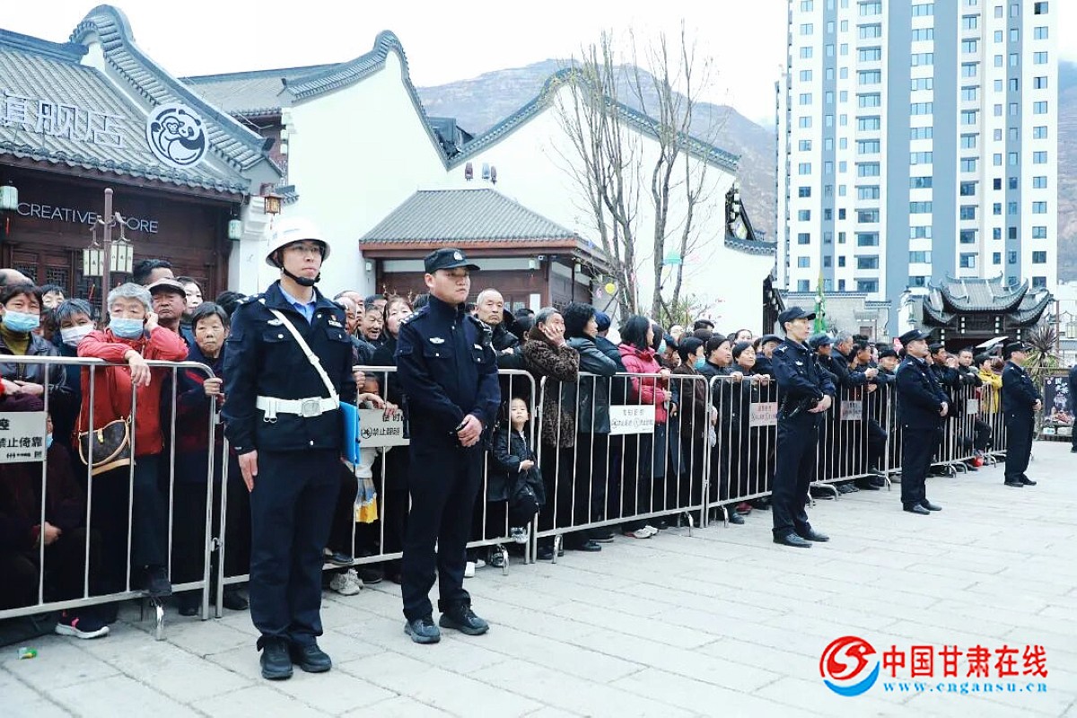中国甘肃在线兰武都讯(通讯员 王骞瑶 王鑫翊)新春佳节,万象更新。农历丙午马年正月以来,陇南市武都区大街小巷张灯结彩,锣鼓喧天,一场场热闹非凡的社火表演将节日的喜庆气氛推向高潮。在涌动的人潮和绚丽的民俗画卷中,有一抹抹藏蓝身影始终坚守,他们便是武都公安分局的民辅警。他们用忠诚与担当,默默守护着这份欢乐与祥和,绘就了一幅“景中有警,警景交融”的平安新春画卷。