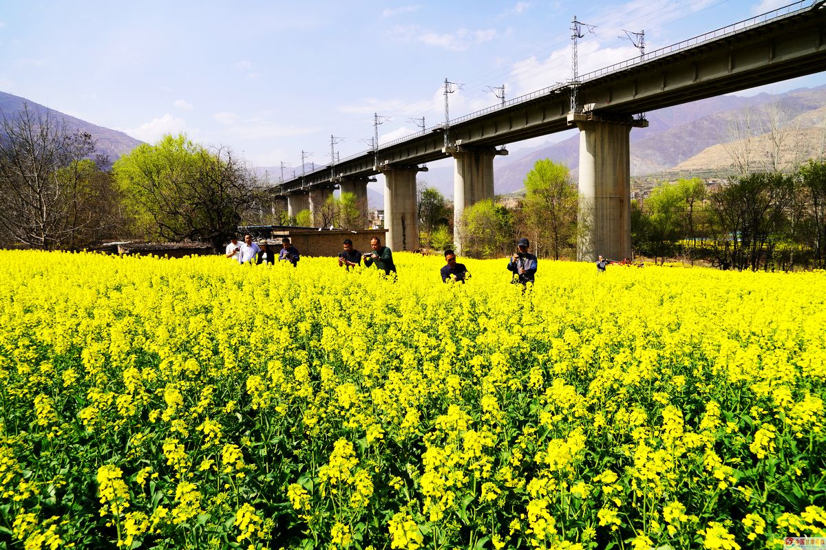 白龙江畔,花红柳绿、菜花金黄,远山叠翠、碧水潺潺。兰渝铁路穿花海而过,乡道蜿蜒纵横,村舍错落有致,一幅生态优美、田园如画的春日盛景徐徐铺展。采风团成员漫步花海、驻足取景,以镜头为笔、以光影为墨,定格春日风光,感受沙湾生态之美、人居之美、乡村之美。