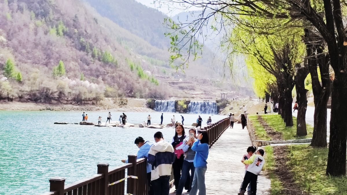 小长假首日,和煦春风拂过官鹅沟的沟谷山峦。漫山遍野的山杏花、野桃花次第绽放,粉白相间的花海顺着山势层层铺展,与湛蓝天空、澄澈湖水、青翠山峦交织相融,勾勒出一幅诗意盎然的春日山水画卷。雪山融水汇成潺潺溪流,山间碧湖清澈如镜,将青山绿树尽数倒映;峡谷之内飞瀑流泉轰鸣作响,松涛阵阵裹挟着淡淡花香。漫步景区栈道,游客既能领略北方山水的雄奇壮阔,又能感受江南水乡的温婉柔美,一步一景皆让人流连忘返。