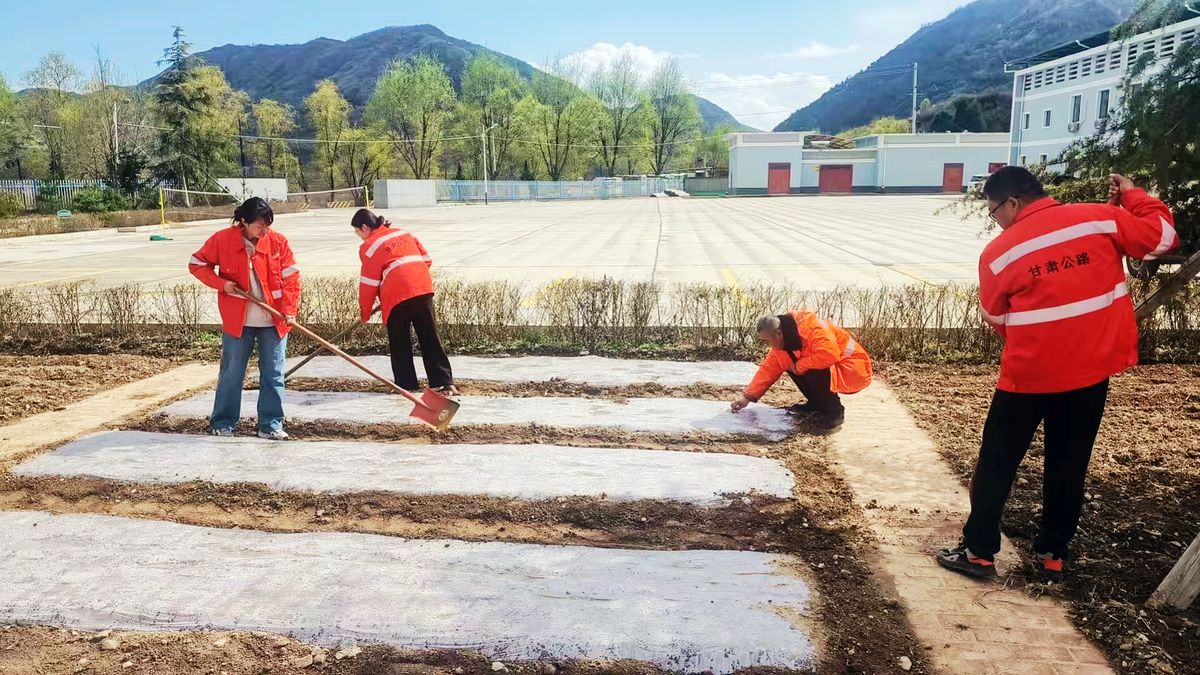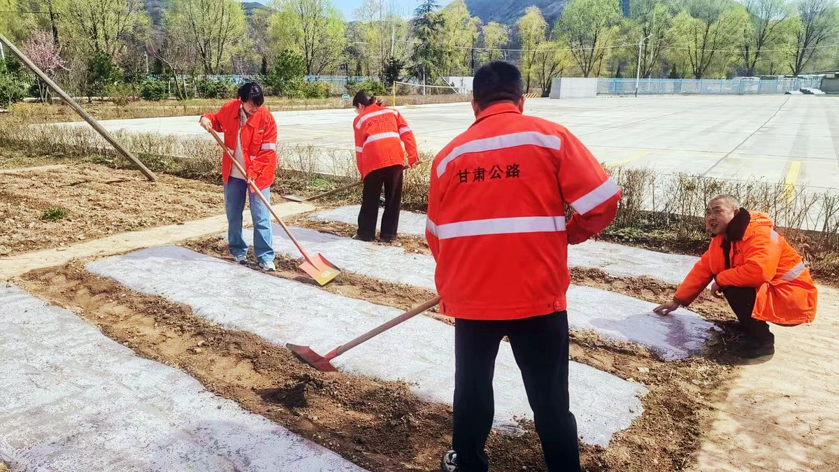 中国甘肃在线礼县讯 俗话说,清明前后点瓜种豆。在这美好的春光里,连日来,礼县公路段职工积极打造“三园一化”建设,在养管站闲地里起个垄、盖上膜,种植蔬菜瓜果,起垄、覆膜、压土、播种、施肥一气呵成,不仅能让职工吃到新鲜蔬菜,又能陶冶情操、拓宽生活视野和丰富业余生活。更是职工放松心身的“开心农场”。图为种植情景。