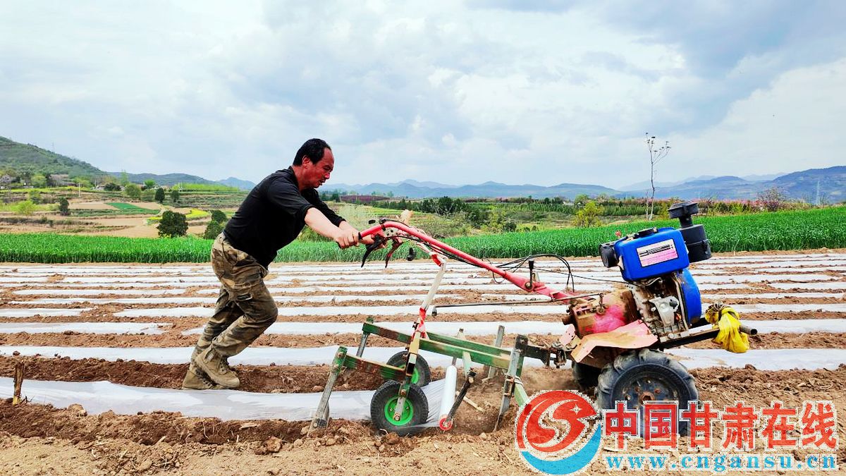 中国甘肃在线徽县讯(甘肃经济日报记者 刘 峰 通讯员叶芃)春风拂过陇原大地,田野间涌动着蓬勃生机,徽县永宁镇郭坪村玉米制种产业园内机器轰鸣、人影穿梭,40余亩制种玉米覆膜作业正有序推进。覆膜机往返穿梭,银亮地膜顺着田垄整齐铺展,农户们默契配合、压实封边,为优质种子扎根生长筑牢墒情保障,一幅抢抓农时、深耕种业的春日农耕画卷徐徐展开。