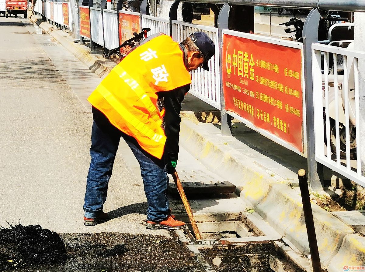 中国甘肃在线礼县讯 连日来,针对今年汛期早,礼县市政人员早行动、早部署、早安排,及早清理下水道淤积杂物,防止城市管道堵塞形成内涝,严重影响人民群众正常生活。图为工作人员清理秦汉大道情景。