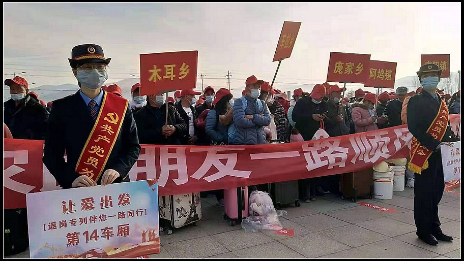 中国甘肃在线(通讯员刘国庆)"去年乡上组织我们去新疆建设兵团务工创业,今年举家正式前往新疆建设兵团50团7连安家落户,开辟‘第二故乡’”。3月20日,即将乘坐火车赴疆返岗的宕昌县木耳乡瓦子村包王世脸上洋溢着幸福灿烂的笑容。包王世全