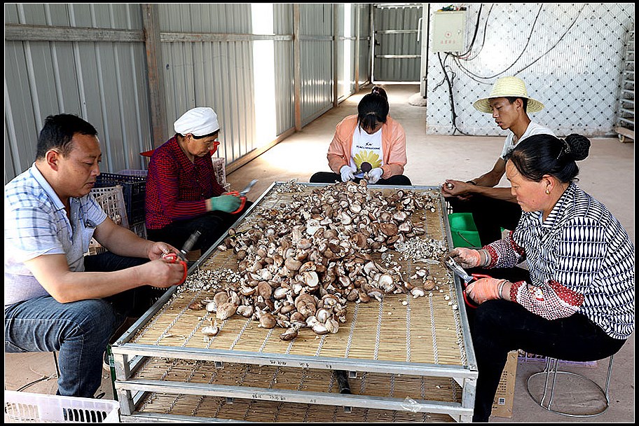 隆冬时节,走进甘肃宕昌县兴化乡磑子坝村特色产业农民专业合作社、工人们正在加工晾晒、初加工扶贫大黄,扶贫车间、农家院落一片忙碌景象。以前靠天吃饭,家里主要收入就是二亩三分田的收成,现在好的很,村上在家门口办起了扶贫车间,能赚钱又能照顾老人孩子