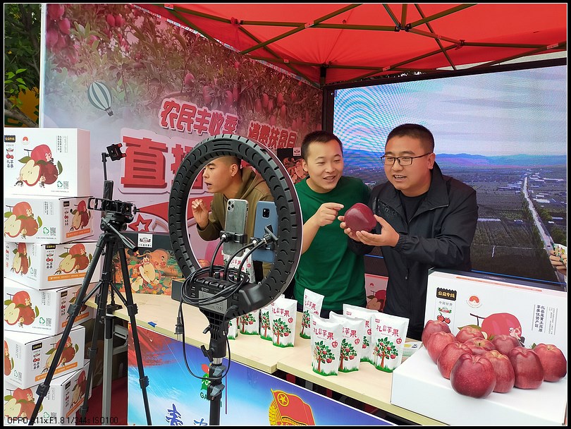 • 带货主播通过网络直播推销礼县苹果