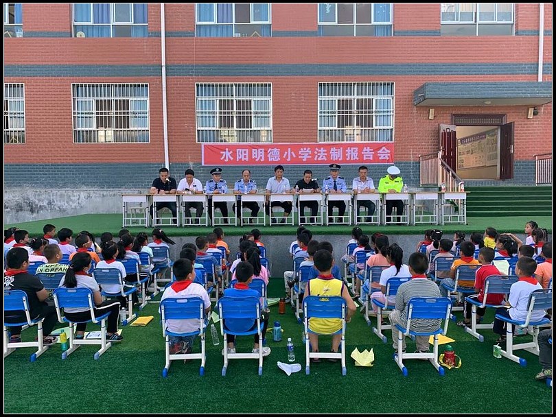 为进一步加强开学季校园安全教育工作,有效预防青少年违法犯罪,减少不法侵害案事件的发生,全力维护校园及周边安全环境。近日,徽县水阳镇市场监管所、司法所联合辖区派出所、交警队水阳中队相关负责人组成的宣讲团到徽县水阳镇明德小学开展法治报告会。讲座