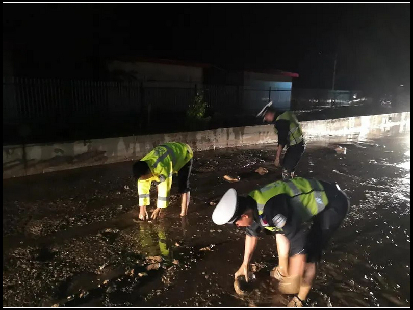 近日,陇南市宕昌县遭遇暴雨突袭,沙湾、两河口等乡镇部分路段发生山洪、泥石流、山体滑坡等险情,导致行车受阻、交通堵塞。灾情发生后,宕昌县公安局交警大队迅速启动应急防汛预案,各中队民辅警全部出动,第一时间上路排查道路交通安全隐患,指挥和疏导交通