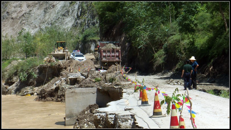 8月11日以来,康县连降大雨,导致境内路桥、饮水、电力等多处基础设施损毁,大量农田被淹,农作物受损,经济损失严重。因受连续强降雨影响,周家坝镇柏杨村纸槽沟发生山体滑坡,阻断河道,形成堰塞湖,省道周长路7km+500m段至纸槽沟被河水淹没,河